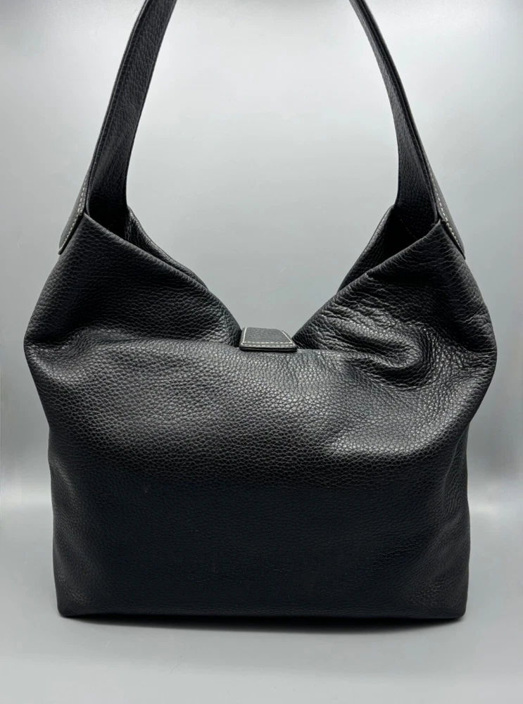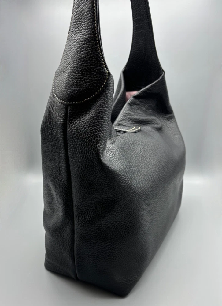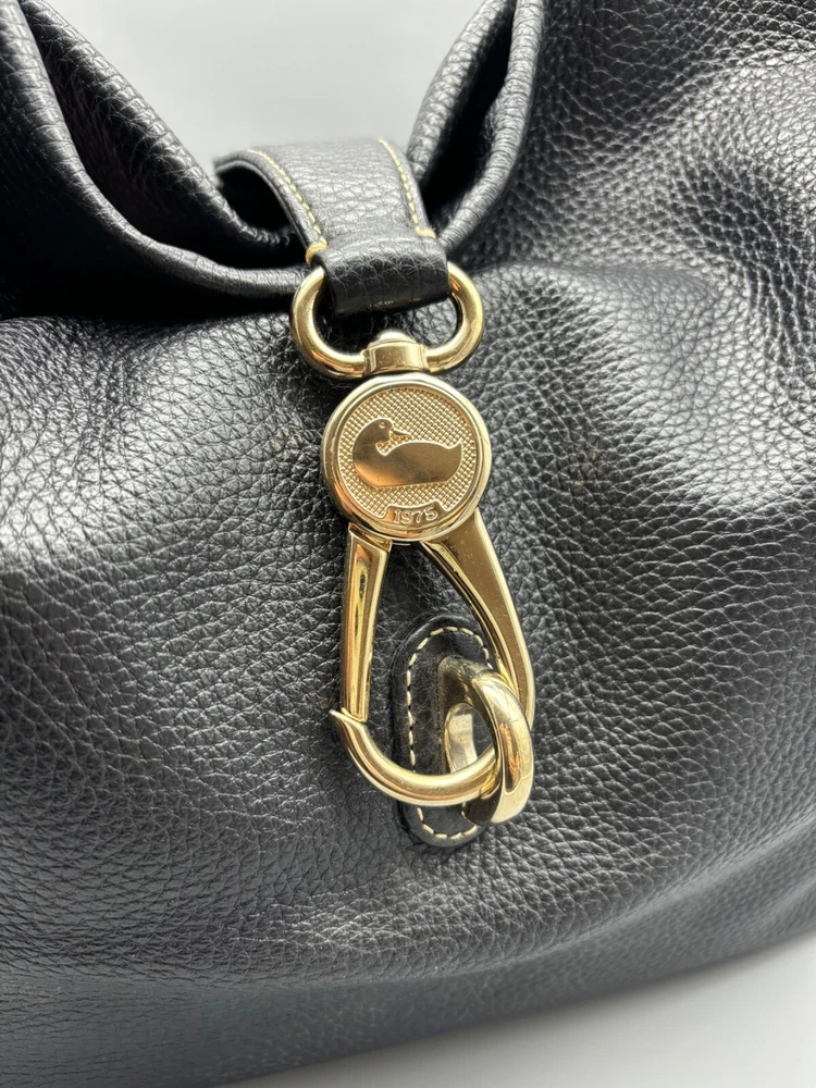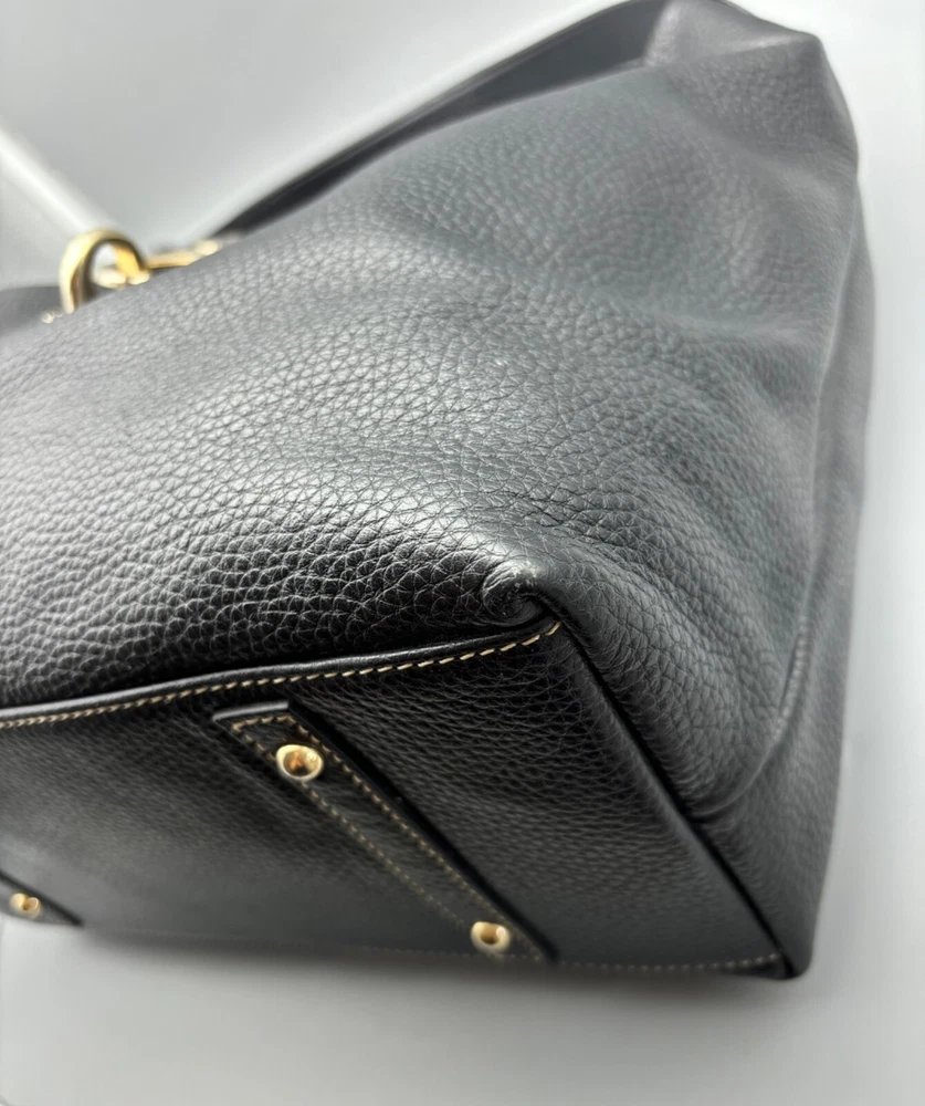 Dooney & Bourke Belvedere black pebbled leather hobo shoulder bag. In excellent condition! Carried only a few times. Clean inside and out. Interior shows a few light marks. The Belvedere is a stunning bag made of buttery pebbled leather and sturdy hardware. The bag's spacious interior will hold everything you need for a day out. Features Gold-tone hardware Lobster clasp closure Pink and white checkered lining Spacious interior 3 interior slip pockets 1 interior zip pocket Measurements Height: 12-1/2 in Width: 13 in Depth: 5 in Strap Drop: 10 in