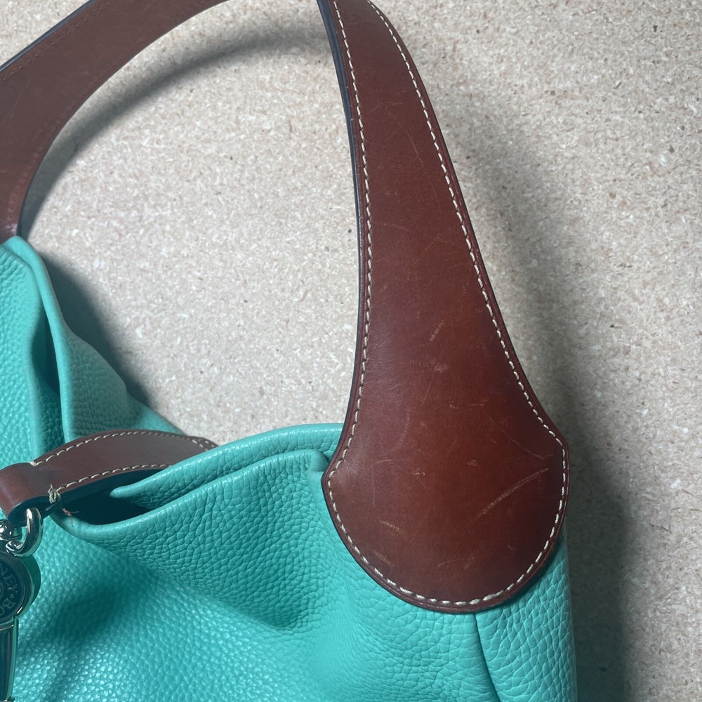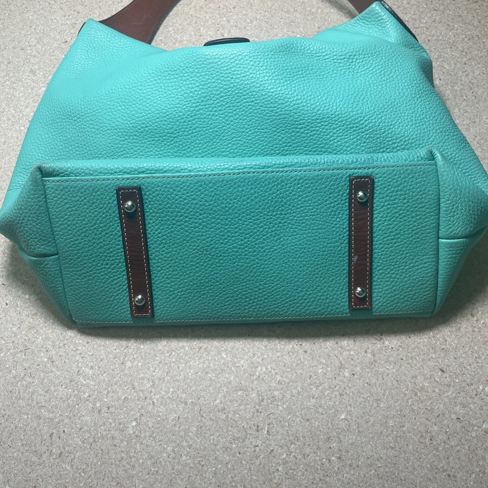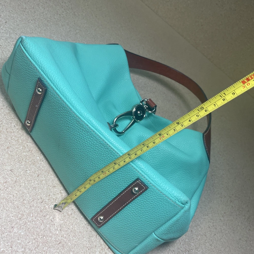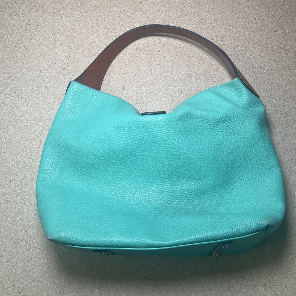 This Dooney & Bourke shoulder bag is a fantastic find! The pebble grain leather feels luxurious, and the mint color is fresh and stylish. It has a couple of minor marks, but they’re barely noticeable—the structure and logo lock still look pristine. Roomy enough for essentials without being bulky, and the shoulder strap is comfortable. Perfect for everyday use or a polished weekend look. Love it!