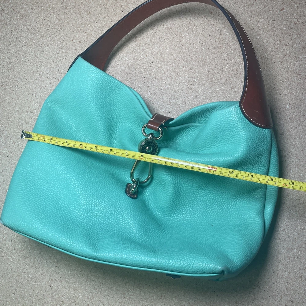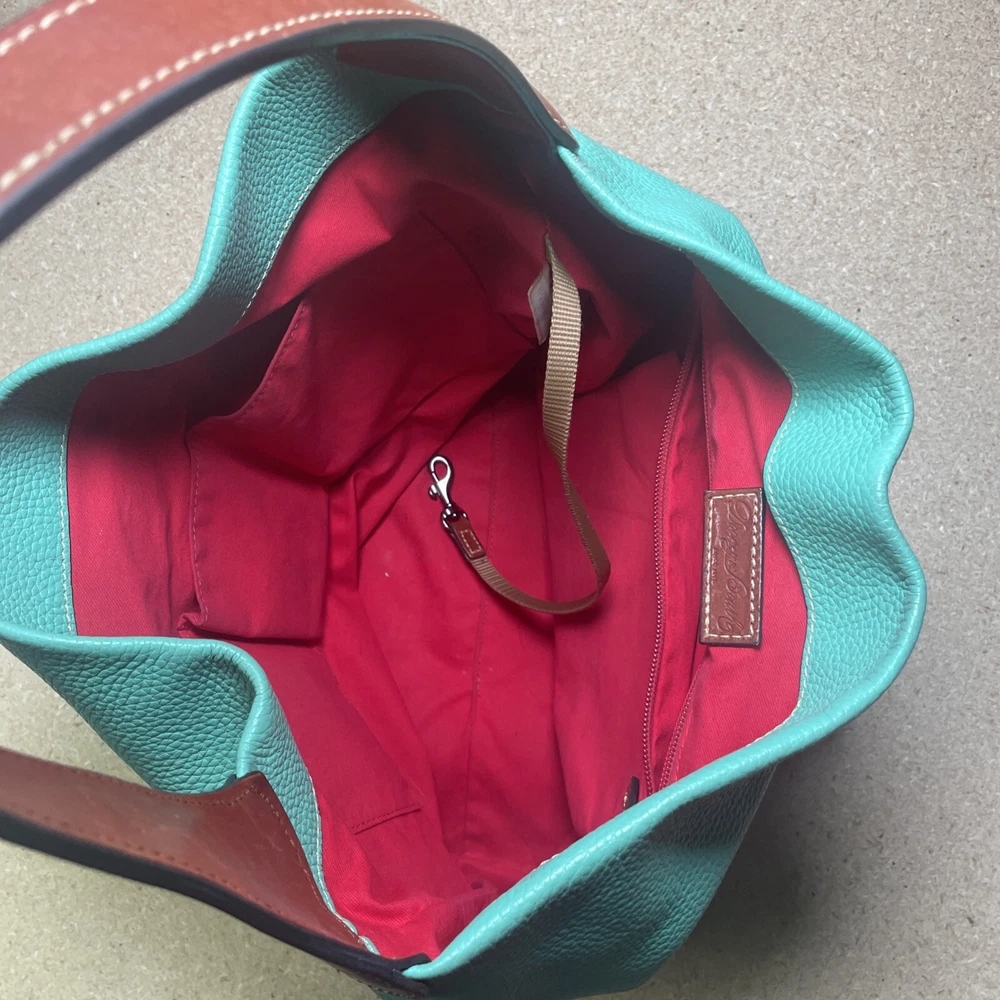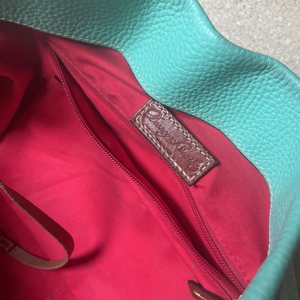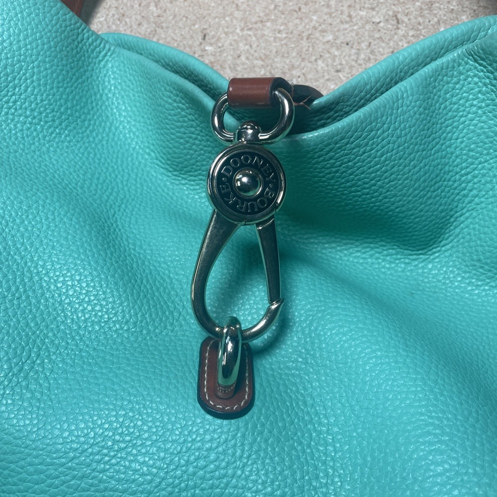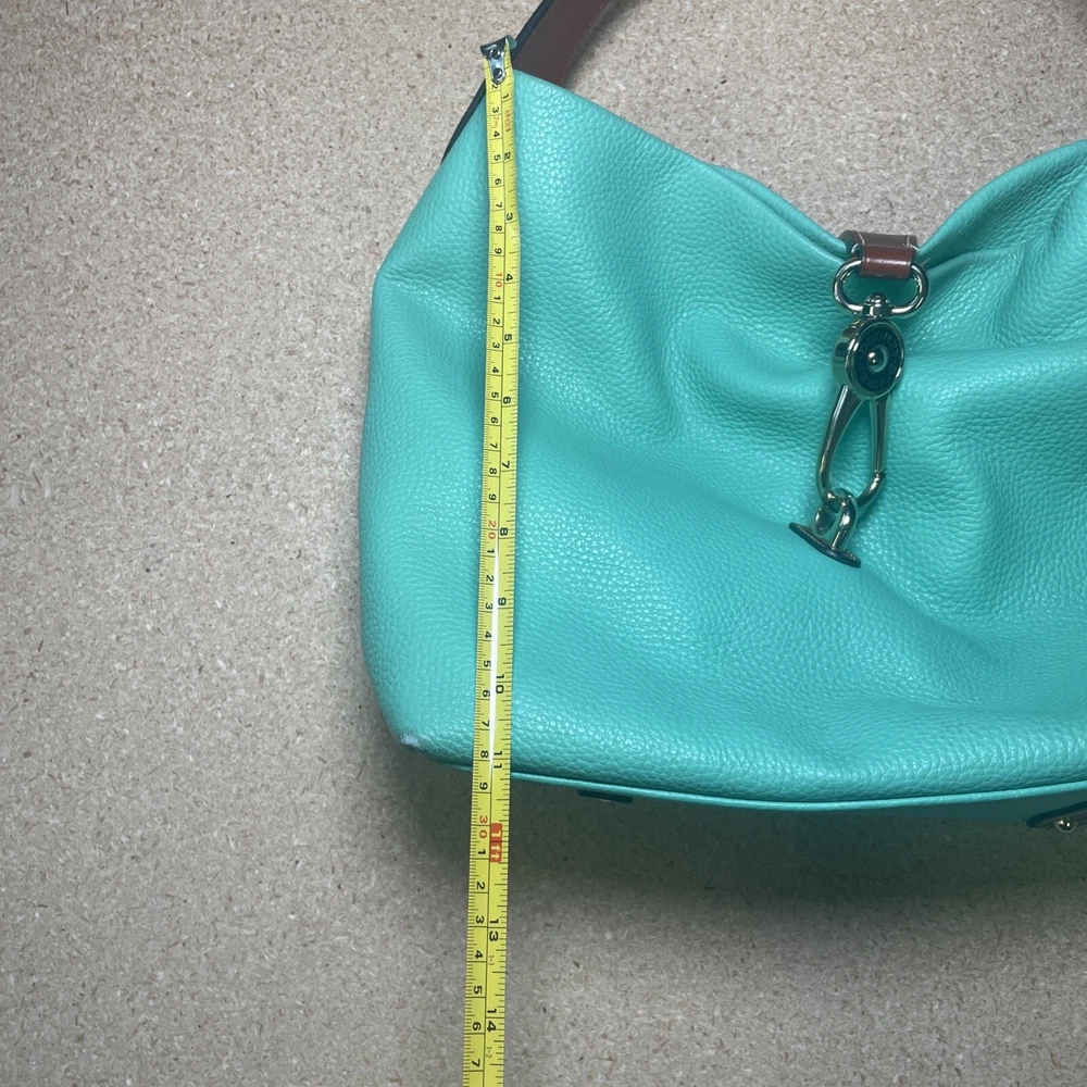 This Dooney & Bourke shoulder bag is a fantastic find! The pebble grain leather feels luxurious, and the mint color is fresh and stylish. It has a couple of minor marks, but they’re barely noticeable—the structure and logo lock still look pristine. Roomy enough for essentials without being bulky, and the shoulder strap is comfortable. Perfect for everyday use or a polished weekend look. Love it!