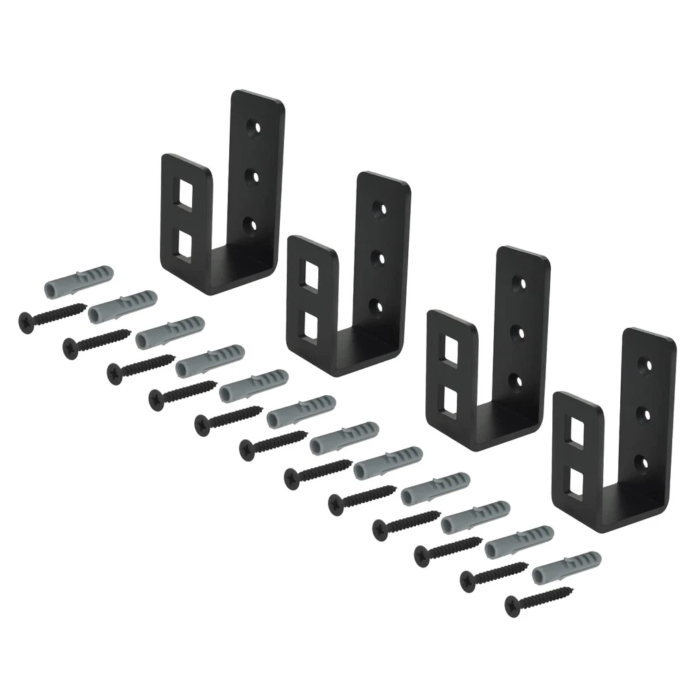 HEAVY DUTY harden steel open bar holder bracket with 4mm thickness SPECIFICATION fit 2x4 standard lumber board to lock the door closed from the inside for extra reinforce security. FINISH black powder coating finish to provide long lasting rust proof for indoor and outdoor application AVAILABLE in variety 2pack or 4 pack brackets EASY TO INSTALL with included 1.625" matching black screws