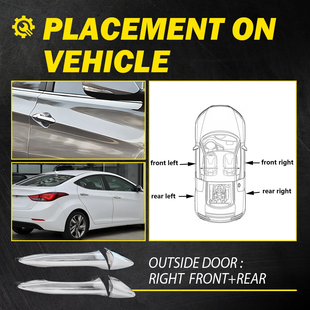 Fit for: 2011-2016 Hyundai Elantra Specifications OE Number: 826613X000-PFM+836623X020-PFM Product Material: ABS Color: Chrome (as pictures show) Placement on Vehicle: Front right of outside door Features: *Perfect Fitment Comply with the industrial standards, use it with confidence. *Strict Quality Control All of our handles undergo strict quality control not just before shipping but throughout the production process. *Durable Material Mainly made of high-quality material to ensure the long service life and durability. *Simple Installation Door Handle For 2011-16 Elantra Hyundai Front Rear Right Chrome w/ Cover Plastic Fit for: 2011-2016 Hyundai Elantra Specifications OE Number: 826613X000-PFM+836623X020-PFM Product Material: ABS Color: Chrome (as pictures show) Placement on Vehicle: Front right of outside door Features: *Perfect Fitment Comply with the industrial standards, use it with confidence. *Strict Quality Control All of our handles undergo strict quality control not just before shipping but throughout the production process. *Durable Material Mainly made of high-quality material to ensure the long service life and durability. *Simple Installation Easy installation with direct replacement, other modifications are not required. *Warm Notice Please double-check the part number and models in the description to guarantee it fits your vehicle before ordering. Packaging Include: Door handle*2 Item Specifics Brand AUXITO Fitment Type Direct Replacement Manufacturer Warranty Yes Type Exterior Door Handle Placement on Vehicl Front, Rear, Right Color Silver Year 2011, 2012, 2013, 2014, 2015, 2016 Material Plastic Package Size 10 x 4 x 4 in Manufacturer Part Number 826613X000-PFM 836623X020-PFM Other Part Number 826613X000-PFM 836623X020-PFM Placement on Vehicle Front right of outside door Number of Pieces 2 Features Durable OE/OEM Part Number 826613X000-PFM 836623X020-PFM Universal Fitment No Interchange Part Number 826613X000-PFM 836623X020-PFM Superseded Part Number 826613X000-PFM 836623X020-PFM Payment Returns DESCRIPTION PAYMENT SHIPPING RETURN POLICY CONTACT US Shop Category Store Home LED Headlight ◈ H4 ◈ H13 LED FogLight ◈ H10 / 9145 / 9140 LED Reverse Light ◈ T15/921/W16W LED Side Marker Light Car Parts & Accessories Tail Light assemblies Other Hot Item Picture New List Item Fit Jeep 05-07 Grand Cherokee Chrome Housing Replacement Headlights Lamp Pair USD 75.99 Headlights Headlamps Halogen Left & Right Pair Set FitVW Rabbit Jetta Golf GTI USD 95.99 FITS 06-10 DODGE CHARGER DRIVER LEFT SIDE FACTORY STYLE HEADLIGHT LAMP CH2502163 USD 89.99 Right Side Tail Lamp Wiring Harness For 2016-2019 Chevy Silverado GMC 2500HD USD 23.99 LH&RH Fit2006-2009 Dodge Ram 1500 2500 3500 w/Chrome Bezel Headlights Set 06-09 USD 85.99 Help & Info Payment Policy Shipping Policy Return Policy FAQ About Us Door Handle For 2011-16 Elantra Hyundai Front Rear Right Chrome w/ Cover Plastic Fit for: 2011-2016 Hyundai Elantra Specifications OE Number: 826613X000-PFM+836623X020-PFM Product Material: ABS Color: Chrome (as pictures show) Placement on Vehicle: Front right of outside door Features: *Perfect Fitment Comply with the industrial standards, use it with confidence. *Strict Quality Control All of our handles undergo strict quality control not just before shipping but throughout the production process. *Durable Material Mainly made of high-quality material to ensure the long service life and durability. *Simple Installation Easy installation with direct replacement, other modifications are not required. *Warm Notice Please double-check the part number and models in the description to guarantee it fits your vehicle before ordering. Packaging Include: Door handle*2 Payment Returns All rights reserved. On Feb 3, 2025 at 11:15:20 PST, seller added the following information: