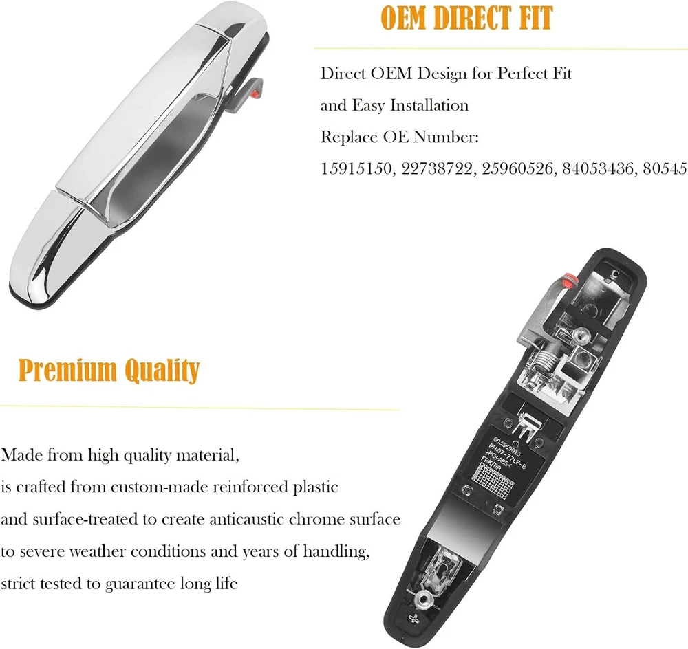 Description: Condition: Brand New Color: Chrome Black base with chrome handle Placement on Vehicle: Front Right Direct Fit without Alterations or Modifications Features: Made of high quality material, more durable and wear-resistant Strict factory production procedures and quality control to gurantee long lifespan OEM design to make sure matching your vehicle perfectly Easy to install without special tools Packages includes: 1 x Chrome Exterior Outer Front Right Passenger Side RH Door Handle 02savfig Best choice of motor parts Door Handle Front Right Passenger Fits 07-13 Chevy GMC Cadillac yukon Outsid 1x Description: Condition: Brand New Color: Chrome Black base with chrome handle Placement on Vehicle: Front Right Direct Fit without Alterations or Modifications Features: Made of high quality material, more durable and wear-resistant Strict factory production procedures and quality control to gurantee long lifespan OEM design to make sure matching your vehicle perfectly Easy to install without special tools Packages includes: 1 x Chrome Exterior Outer Front Right Passenger Side RH Door Handle Note: For 2007 Silverado / Sierra models, the Classic Style has a crease down the center of the door skin where on the new body styles, the door skin is smooth. This part is for the new body style truck. Compatible with: 2007-2013 Cadillac Escalade Chrome Exterior Door Handle 2007-2013 Cadillac Escalade ESV Chrome Exterior Door Handle 2007-2013 Cadillac Escalade EXT Chrome Exterior Door Handle 2007-2013 Chevy Avalanche Chrome Exterior Door Handle 2007 Chevy Silverado 1500 Crew Cab New Body Style Chrome Exterior Door Handle 2008 - 2013 Chevy Silverado 1500 Crew Cab Chrome Exterior Door Handle 2007 Chevy Silverado 2500 HD Crew Cab New Body Style Chrome Exterior Door Handle 2008 - 2014 Chevy Silverado 2500 HD Crew Cab Chrome Exterior Door Handle 2007 Chevy Silverado 3500 HD Crew Cab New Body Style Chrome Exterior Door Handle 2008 - 2014 Chevy Silverado 3500 HD Crew Cab Chrome Exterior Door Handle 2007 - 2014 Chevy Suburban 1500 Chrome Exterior Door Handle 2007 - 2013 Chevy Suburban 2500 Chrome Exterior Door Handle 2007 - 2014 Chevy Tahoe Chrome Exterior Door Handle 2007 GMC Sierra 1500 Crew Cab New Body Style Chrome Exterior Door Handle 2008 - 2013 GMC Sierra 1500 Crew Cab Chrome Exterior Door Handle 2007 GMC Sierra 2500 HD Crew Cab New Body Style Chrome Exterior Door Handle 2008 - 2014 GMC Sierra 2500 HD Crew Cab Chrome Exterior Door Handle 2007 GMC Sierra 3500 HD Crew Cab New Body Style Chrome Exterior Door Handle 2008 - 2014 GMC Sierra 3500 HD Crew Cab Chrome Exterior Door Handle 2007 - 2014 GMC Yukon Chrome Exterior Door Handle 2007 - 2013 GMC Yukon XL 1500 / 2500 Chrome Exterior Door Handle Installation Steps: Step 1 Remove the door inner panel, do not damage your car interior decoration, search for panel labels or screws. Step 2 Next, carefully remove any water diversion cardboard covering the handle area. Step 3 Remove any linkages from your existing door handles, make sure to note all connections, and check the owner’s manual when disassembling and reconnecting. Step 4 Open the door handle and remove it from the door. Step 5 Replace your new handle and install it where the handle is. Reconnect your linkage, replace other non-compliant parts and replace the door panel. Warm tips: 1. Please kindly confirm the fitment before ordering to make sure this item is perfectly fit. 2. It is easy to install, but professional installation is always recommended. 3.Any questions please send us eBay message. Item Specifics Brand Unbranded Type Front Right Exterior Door Handle Color Silver Placement on Vehicle Front Right Number of Pieces 1 Finish Chrome Material ABS Plastic Features Easy to Install Manufacturer Part Number 22738722 OE/OEM Part Number 15915150 22738722 25960526 80545 Attachment Type Bolt-On Universal Fitment No Shape Bar Fitment Type Direct Replacement Hand Orientation Right Superseded Part Number 15915150, 22738722, 25960526, 80545 Interchange Part Number 15915150, 22738722, 25960526, 80545 Model For Chevrolet/Cadillac/GMC Items Included 1PC Front Right Exterior Door Handle Payment 1. It will be much appreciated that you finish your payment asap or it will make UPI (unpaid item case) on your account leading to be suspended or restricted by eBay when those UPI cases carry over to certain amount. 2. Any problems please contact us for more details. Shipping 1. All items will be shipped to buyer's ebay address. 2. All items will be shipped within 24-48 working hours upon receipt of payment, and multiple items will be combined shipping. 3. In most cases, delivery takes around 3-5 business days, it's highly depended on the efficiency of the shpping carrier. If your item doesn't arrive on time, please contact us immediately for further assistance. Please note there is no local pickup service available. Returns If you are not 100% satisfied with your purchase, you can return the product and get a full refund or exchange the product for another one. Please Note: Please write us a message before your return, otherwise we will not accept the package. Any product you return must be in the same condition you received it and in the original packaging. Contact Us 1. We care about our valued buyers, if you have any questions, our Customer Service staff will be very glad to help you. We try our best to reply your contact as soon as possible, please kindly allow 24 hours for us to response. 2. Our goal is to make sure you are a happy buyer and pleasant shopping with us. Please contact us before leaving any 1 or 2 star ratings, negative feedback or open any dispute. We understand the concerns and frustrations you might have, and will do our endeavor to resolve the issues. 02savfig Best choice of motor parts Shop Category Store Home Other Hot Item Excellent Delivery Help & Info Payment Policy Shipping Policy Return Policy FAQ About Us New List Item Driver Passenger Front Seat Belt Buckle Socket Plug Connector w