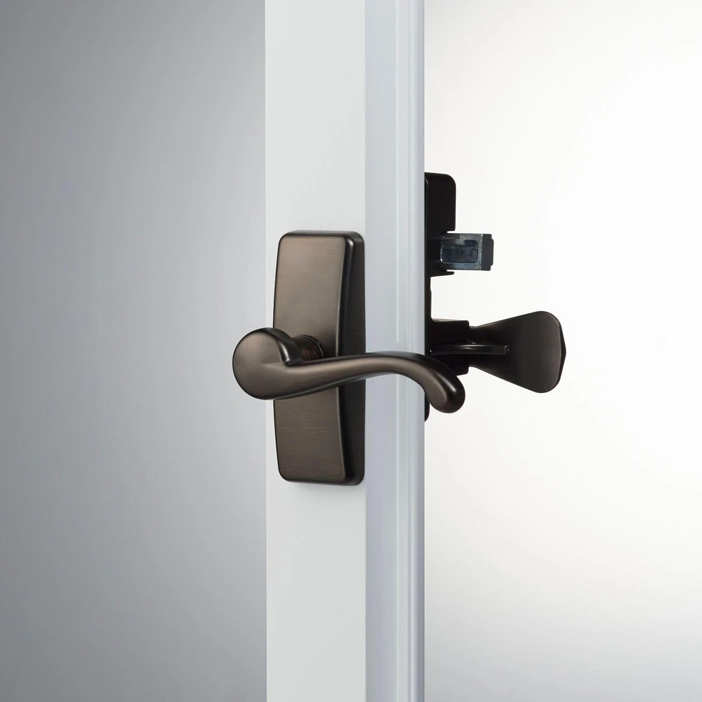 This deluxe storm door hardware set includes an elegant lever handle, an interior latch, and a deadbolt. It is with most pre-installed handles and complements a wide range of décor styles. The elegant and easy-to-operate handle replaces the basic push-button handle that may already be on your screen door. The interior latch features an easy opening push movement. The long-lasting finish will provide an added touch of class to any storm door. This set includes everything needed for an easy installation. When replacing an existing handle, the screw posts for the handle must be 1-3/4” apart. For new installations, three additional holes are required to be drilled through the door for the screws and spindle. The lock can be installed above or below the handle, depending on your preference. The spindle for the deadlock may be cut for your particular installation. Before drilling, ensure that the inside latch and lock do not interfere with the operation of your main door handle. If they do, raise or lower the storm door hardware. has been supplying quality hardware to door manufacturers for 65 years. Please explore our other door and window hardware products for your home. Elegant Upgrade: This stylish door handle and inside latch replaces any standard storm door handle set; the matching keyed deadbolt adds both curb appeal and to your home Popular Handle: This storm door handle is with most pre-installed surface mount handles and locks, it does not replace any other mortise handle sets Convenient Design: This lever handle should work with most out-swinging storm or screen doors; the package includes hardware (spindles and screws) for doors from 1 to 2-1/8" thick Installation: A 3/8” deep hole must be chiseled into the door jamb for the deadbolt; when replacing an existing handle, screw posts for the handle must be 1-3/4” apart Package Includes: GL lever handle, SK357 interior latch, deadbolt, as well as all components and hardware
