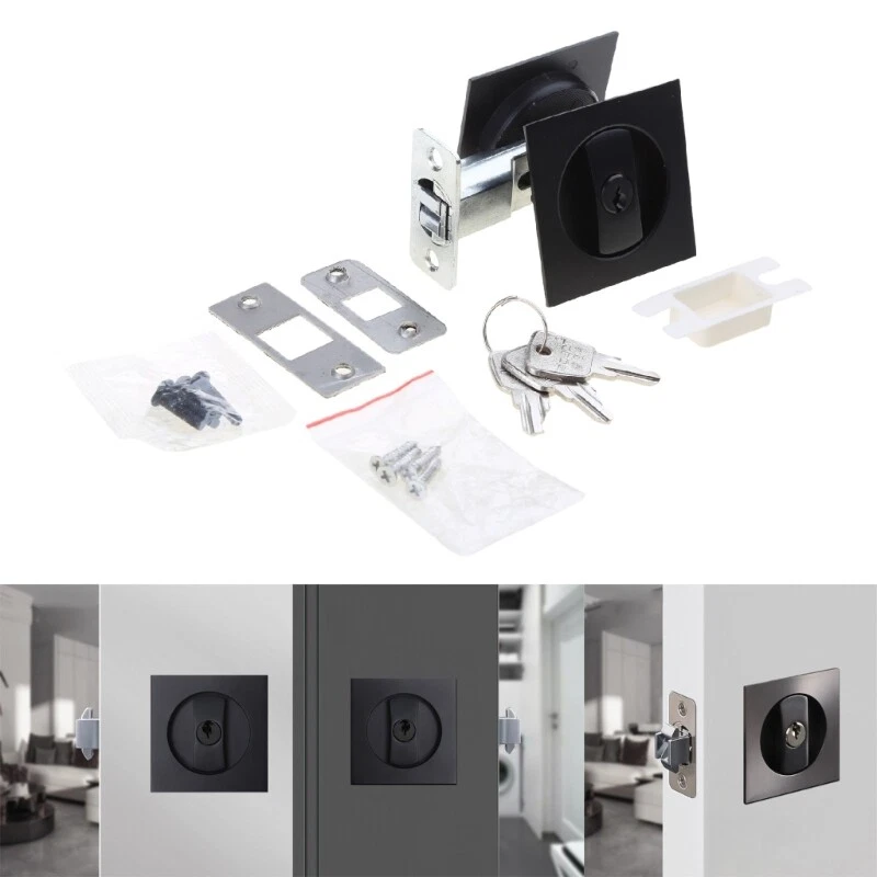 Features: Reversible-and safety: This deluxe-black pocket door lock and pull has a wide, easy grip design and is-for left or right handed door. Privacy functions allows for you to lock the door from the interior. Replace old or broken pocket door locks: When your pocket door privacy lock is broken or old, don’t replace the door entirely, just-get a-locks and pull set. Easy installation: Installation is quick and easy, plus-all black pocket door-hardware and instructions are included. The lock set is non handed. Easy to use: Latch-has round corner faceplate for privacy and entry function. Designed For Sliding-Door,Design Eliminates Need To Cut-Notch In New Door. Specifications: Material: Stainless Steel Color:Black/ Silver Size:Approx.6.6x6.6cm/2.59x2.59" Package Includes: 1 Piece Black Pocket Door-Hardware note: Please allow 1-2cm errors due to manual measurement,Please make sure that you do not mind before you order. Due to the difference between different monitors, the picture may not reflect the actual color of the item.