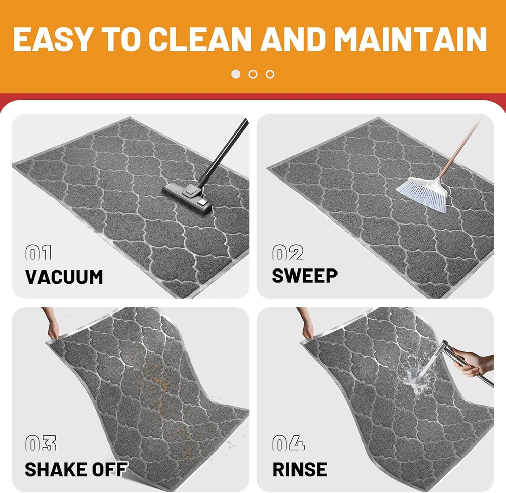 Store New Arrivals Add to Favorite View Feedback Contact Fast deliveries to the customer's home Quality customer service John Make the customers happy! Door Mat, Front Door Mat, 46X35, Welcome Mats for Entryway,Garage,High Traffic Areas, Jumbo Size, Doormat Entrance, Waterproof Mat, Easy Clean, Outdoor Indoor Floor Mat,Non Slip (Grey) Description LARGE SIZE AND WIDELY USED, Door mat measures 46x35 inches, perfect size for indoor or outdoor use, durable enough to be used under different seasons of the year.The outdoor mat can be placed in high traffic areas such as garage entrances, gyms, lobbies, patios, offices, laundry rooms, halls and more. EASY TO CLEAN, This outdoor doormat is very easy to clean and maintain, you can use a vacuum cleaner to suck up dust and debris or shake off excess debris outside,wipe it down with a damp cloth.You can also rinse this doormat with a garden hose or scrub it with a brush.For wrinkles created during packaging or transportation, you can simply put them in the dryer for 5 minutes and they will instantly flatten out. DURABLE AND NON-SLIP, The front door mat is made of soft and durable material that provides cushioning while preventing slipping. A thickness of 0.4 inches provides space for opening the door.Deep grooves and high quality mesh better capture dirt on muddy shoes and claws. PHTHALATE AND BPA FREE,The door mats outdoor is made by high quality enviromental PVC material, holds up against the toughest of weather conditions, dries quickly, and does not fade. These features make it perfect as a boot mat, shoe mat, entry mat, entrance mat, indoor mat. WIDELY APPLICABLE, Outdoor mats for home entrance are simple in style and versatile, ideal for front doors,stairs, patios, garages, laundry rooms, balconies, kitchens, bathrooms, and more. The welcome mat can also add a sense of home decoration to you. Product Description MAINTAIN YOUR TIDY HOME Stop mud,debris and dirt from entering your home with unique mesh weave construction to help create comfortable and tidy home. Durable quality with soft material characteristics, give you a comfortable foot feeling Non-Silp backing keeps mat in place. MAKE YOUR LIFE EASY Easy to clean--Shake off the debris or use a vacuum cleaner. Easy to remove indentation -heat gently with a hair dryer Suitable for a variety of decor styles for doorways, kitchen, garage, patio and laundry Note: Ensure the mat lies flat before using,keep the floor clean and dry. Please clean the doormats regularly and store them in a dry and clean environment to avoid odours. Creases created during packaging or transport, you can simply put them in the dryer or use a hair dryer to gently heat them for 5 minutes and they will instantly become flat. Item model number B07FM3Z77T Style Outdoor & Indoor Pattern Trellis Age Range (Description) Adult Country of Origin China Is Stain Resistant Yes Theme winter Number of Pieces 1 Is Autographed No Material pvc Model Name Door Mat Is Discontinued By Manufacturer No Rug Form Type Doormat Item Thickness 0.4 Inches Indoor/Outdoor Usage Outdoor, Indoor Water Resistance Level Waterproof Room Type Laundry Room, Kitchen Item Weight 3.9 Pounds Pile Height Low Pile Construction Type Machine Made Occasion Housewarming Special Feature Waterproof, Fade Resistant, Quick Dry, Non Slip, Washable Color Grey Shape Rectangular Back Material Type Rubber Product Dimensions 46"L x 35"W Size 46"x35" ABOUT US We offer the best prices around on high quality products. Our E-store includes media such as books, movies, music and games while offering electronics, toys, sporting apparel, clothing, tools, general home, garden items and more. SHIPPING We are always working hard to ensure your package arrives as soon as possible. Please understand that some factors like weather, high postal traffic, and the performance of shipping companies are outside of our control. We offer free shipping to the lower 48 states and ship within 2 business days of payment, usually sooner. We do not accept P.O. Boxes. Please provide a physical address. For shipping outside of the continental USA, we only use eBay's Global Shipping Program. The item is shipped to KY and then sent to the rest of the world. International customers are responsible for all duties and taxes. Continue to 'check out' to calculate costs for shipping the item to your country. Messages regarding eBay's Global Shipping Program MUST be directed at eBay EXCLUSIVELY. RETURNS We offer a 30-Day Return Policy on items in which you are not completely satisfied with. You have the option of a full-refund or an exchange of the item. No returns are available on items shipped outside of the USA PAYMENT We accept PayPal. CONTACT US This page content is yet to come Please ad us to your favorite seller and visit again later Thank You CUSTOMER SATISFACTION We try our very best to make sure every customer is completely satisfied. If there's a problem, message us! We're happy to help. WE ACCEPT