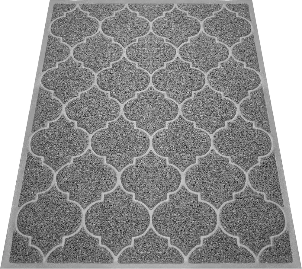 Water Resistance Level: Waterproof Theme: winter Rug Form Type: Doormat Number of Pieces: 1 Item Weight: 3.9 Pounds Pile Height: Low Pile Pattern: Trellis Construction Type: Machine Made Size: 46"x35" Product Dimensions: 46"L x 35"W Is Autographed: No Is Stain Resistant: Yes Model Name: Door Mat Color: Grey Age Range (Description): Adult Room Type: Laundry Room, Kitchen Brand: Does not apply Item Thickness: 0.4 Inches Back Material Type: Rubber UPC: 313053164194 Country of Origin: China Material: pvc Item model number: B07FM3Z77T Type: Does not apply Occasion: Housewarming Special Feature: Waterproof, Fade Resistant, Quick Dry, Non Slip, Washable gtin13: 313053164194 Is Discontinued By Manufacturer: No Style: Outdoor & Indoor Shape: Rectangular Indoor/Outdoor Usage: Outdoor, Indoor