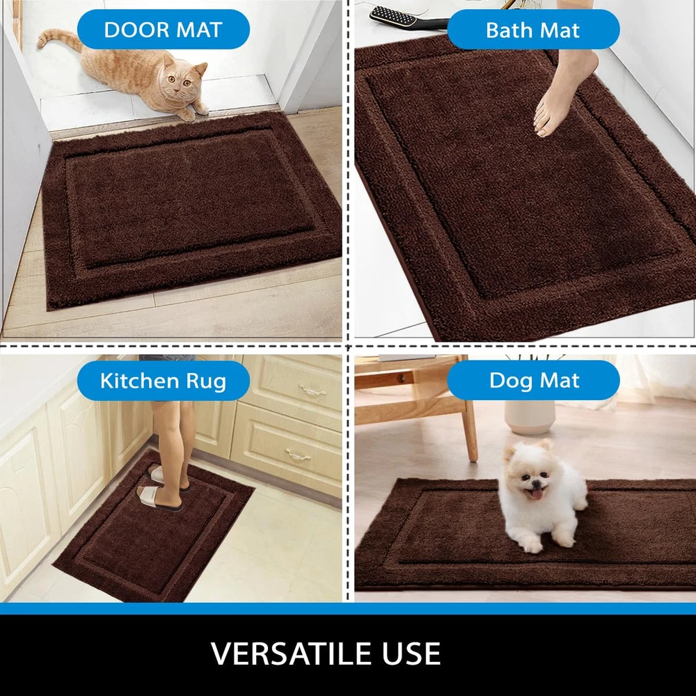 [LOW PROFILE & ABSORBENT TOP]: With its low-profile design measuring just 0.5" thick, this entryway rug won't get jammed or curled when doors are opened or closed. Additionally, this door mat is made of high-density super absorbent material that can effectively capture water and dirt from boots or muddy paws, making it an ideal solution for maintaining a clean and tidy floor [NON-SLIP & DURABLE BACK]: Thanks to its strong anti-shift backing, this doormat will remain firmly in place. Unlike other mats with cheap PVC bottoms, this bottom is made of premium odourless TPR material which is highly durable and resistant to oxidation. To ensure its non-slip backing is effective, it's essential to clean the floor of any dirt, oils, or water before use [EASY TO CLEAN]: For daily cleaning, shake it off or vacuum it. For a deeper clean, you can wash it in the machine using cold water and dry it on low. Its fade-resistant fabric and reinforced overlook edges make it incredibly durable, ensuring that your entry rug looks like new, even after repeated washing [MULTI-PURPOSE USE]: Measuring 32 inches (W) x 48 inches (L), this mat is ideal for use at the front door, back door, kitchen, bathroom, indoor entrance, laundry, mudroom, hallway, and garage, making it a versatile choice for door mats, welcome mats, front door rugs, area rugs, dog rugs, and dog mat for muddy paws [PLEASE NOTE]: This door mats is folded for packaging, it may have a slight crease in the middle. Don't worry, the crease will gradually disappear with daily use. You can also refer to the graphic tutorial below to better eliminate creases