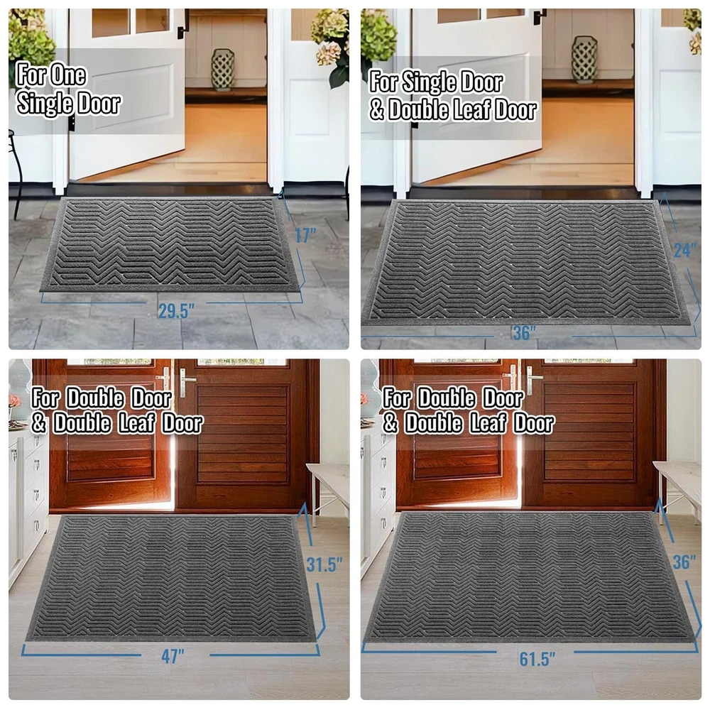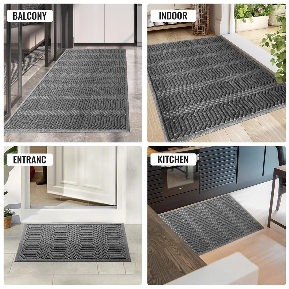 Door Mat Indoor Entrance, Sturdy Front Door Mat Outdoor, Absorbent Muddy Dirt Resist Welcome Door Mats, Non-Slip Backing Entry Mat Doormat for Entryway, Fade and Stain Resistant, 36x24 Inch, Grey Product Details Size: 36" x 24" Color: Light Grey Brand: BEHERO MPN: Does not apply UPC: Does not apply EAN: Does not apply Brand: BEHERO Size: 36" x 24" Material: Polyester, Polypropylene, Rubber Weave Type: Hooked Item Weight: 3.6 Pounds Brand: BEHERO Size: 36" x 24" Material: Polyester, Polypropylene, Rubber Weave Type: Hooked Item Weight: 3.6 Pounds Pile Height: 0.3 Construction Type: Machine Made Back Material Type: Rubber Color: Grey Indoor/Outdoor Usage: Indoor Theme: Christmas, Winter, RV, Welcome, Season, Thanksgiving, Fun Is Stain Resistant: Yes Product Care Instructions: Machine Wash, Hand Wash Only Pattern: Geometric, Gingham, Checkered Shape: Rectangular Special Feature: Absorbent, Fade Resistant, Quick Dry, Stain Resistant, Non Slip Room Type: Entryway, Laundry Room, Kitchen, Home Office, Hallway Product Dimensions: 36"L x 24"W Rug Form Type: Doormat Style: Art Deco, Country, Vintage, Shabby Chic, Modern Occasion: Christmas, New Year, Housewarming, Halloween, Thanksgiving Item Thickness: 0.3 Inches Warranty Type: Lifetime Water Resistance Level: Water Resistant Is Autographed: No Seasons: spring, summer, autumn, winter Recommended Uses For Product: Entryway, Patio, Porch, Kitchen, Garage, Deck, Pet Entry, High Traffic Areas Item Weight: 3.6 pounds Date First Available: September 4, 2024 Doorstep Cleaner: BEHERO door mat is made of absorbent polypropylene fabric, with deep groove design lead to capture moisture and dirt from shoes effectively. Keep your doorway clean and tidy and protect your home from dust starting with this entrance mat Practicality and Safety First: BEHERO front door mat make up from natural rubber, which offers higher tensile strength, better tear resistance, better grip and less odour than other synthetic rubber or PVC backing. Kids and pets running around safely Stain and Fade Resistant: BEHERO indoor and outdoor mat surface is made of high density polyester fibre, absorbs water well and dry quickly at the same time. As outdoor mat features heat resistant, water resistant, color will not fade remain as new Easy to Clean: BEHERO welcome mat can be vacuumed, swept and shaken off the dirt. For a deep clean, rinse or machine wash it and hang the matt in a ventilated place. Save time on cleaning to ensure that doormat stays clean and tidy to welcome guests Long Time Using: You may get tired of looking at this door mat indoor entrance because it last too long time. Entryway rug make up from high quality material with moisture-proof , wear-resistant, cold-resistant suitable for all seasons and weather