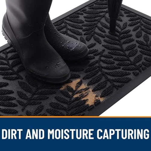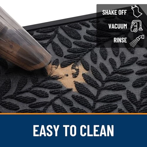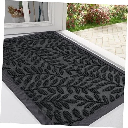 Material: Polyester Water Resistance Level: Waterproof Indoor Outdoor Usage: Both Seasons: All Season Room Type: Kitchen, Living Room, Guest Room, Hallway, Dining Room Min Required Door Width: 24 Inches EAN: Does Not Apply Item Length: 1 Theme: Welcome gtin13: Does Not Apply Style: Modern Recommended Uses For Product: front door entrance, garage, office, indoor, outdoor, all seasons Is Stain Resistant: Yes Special Feature: Waterproof, Moisture Barrier, Fade Resistant, Non Slip, Washable Item Weight: 3.64 pounds Item Width: 1 Size: 36" x 24" Country of Origin: China Product Dimensions: 36"L x 24"W MPN: Does Not Apply Type: Does Not Apply Occasion: New Year, Housewarming, All Season, All Weather, St. Patrick's Da Product Care Instructions: Hose Down, Vacuum, Sweep, Shake off, Rinse, Drying Item Height: 1 Color: Black Pattern: Leaf Construction Type: Machine Made Shape: Rectangular Weave Type: Flat Woven Item Thickness: 0.2 Inches UPC: Does Not Apply Back Material Type: Rubber Animal theme: Leaf Date First Available: July 5, 2024 Brand: Does Not Apply Rug Form Type: Doormat Pile Height: Low Pile