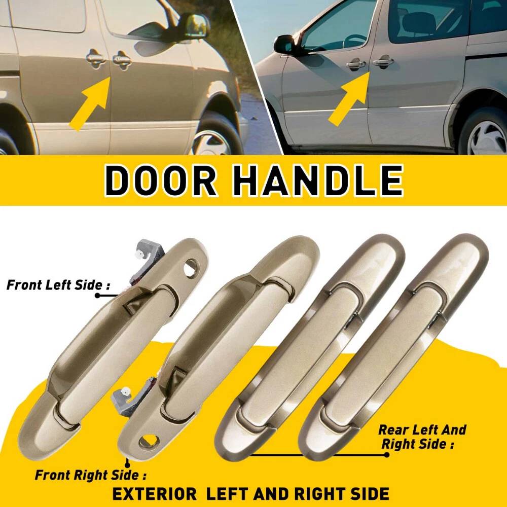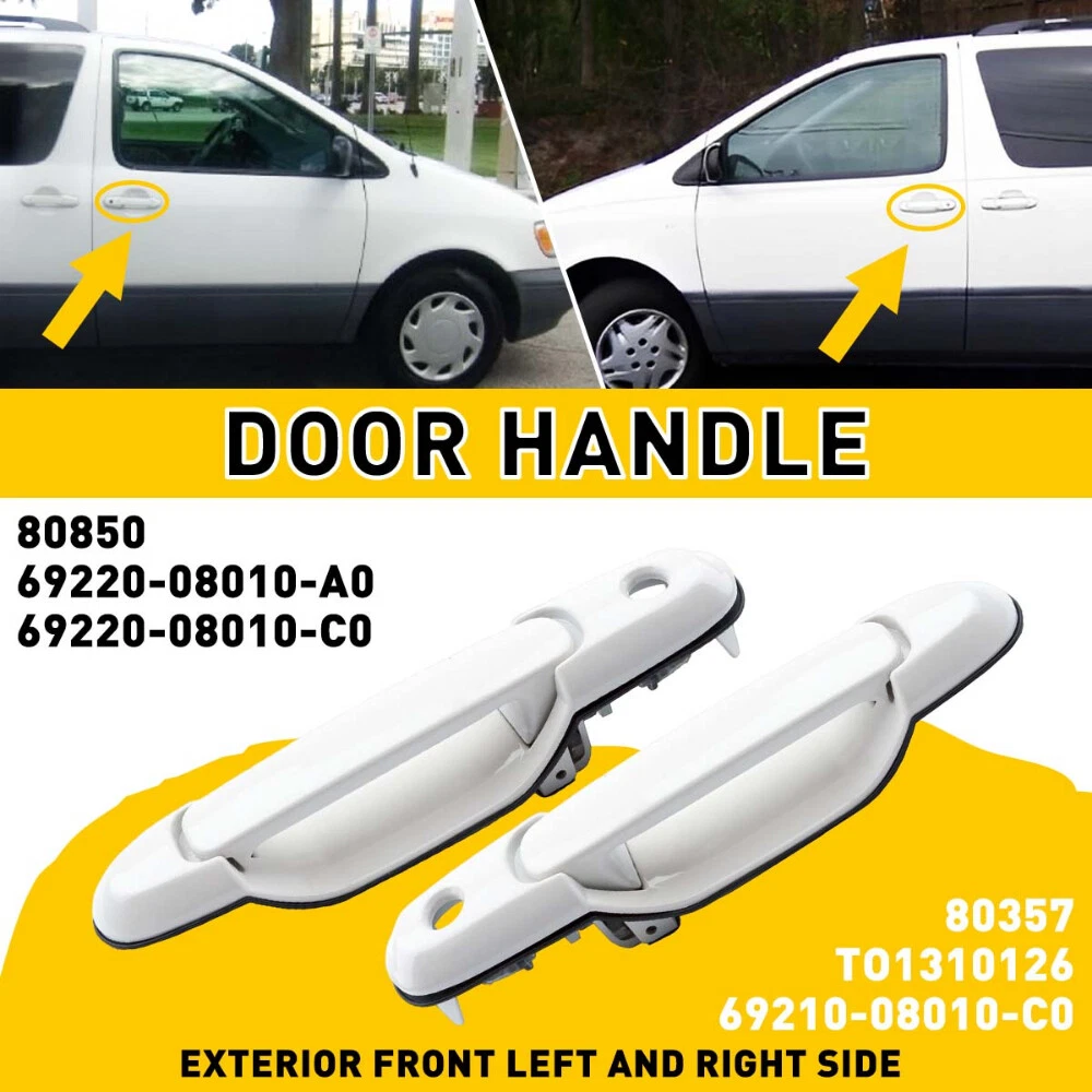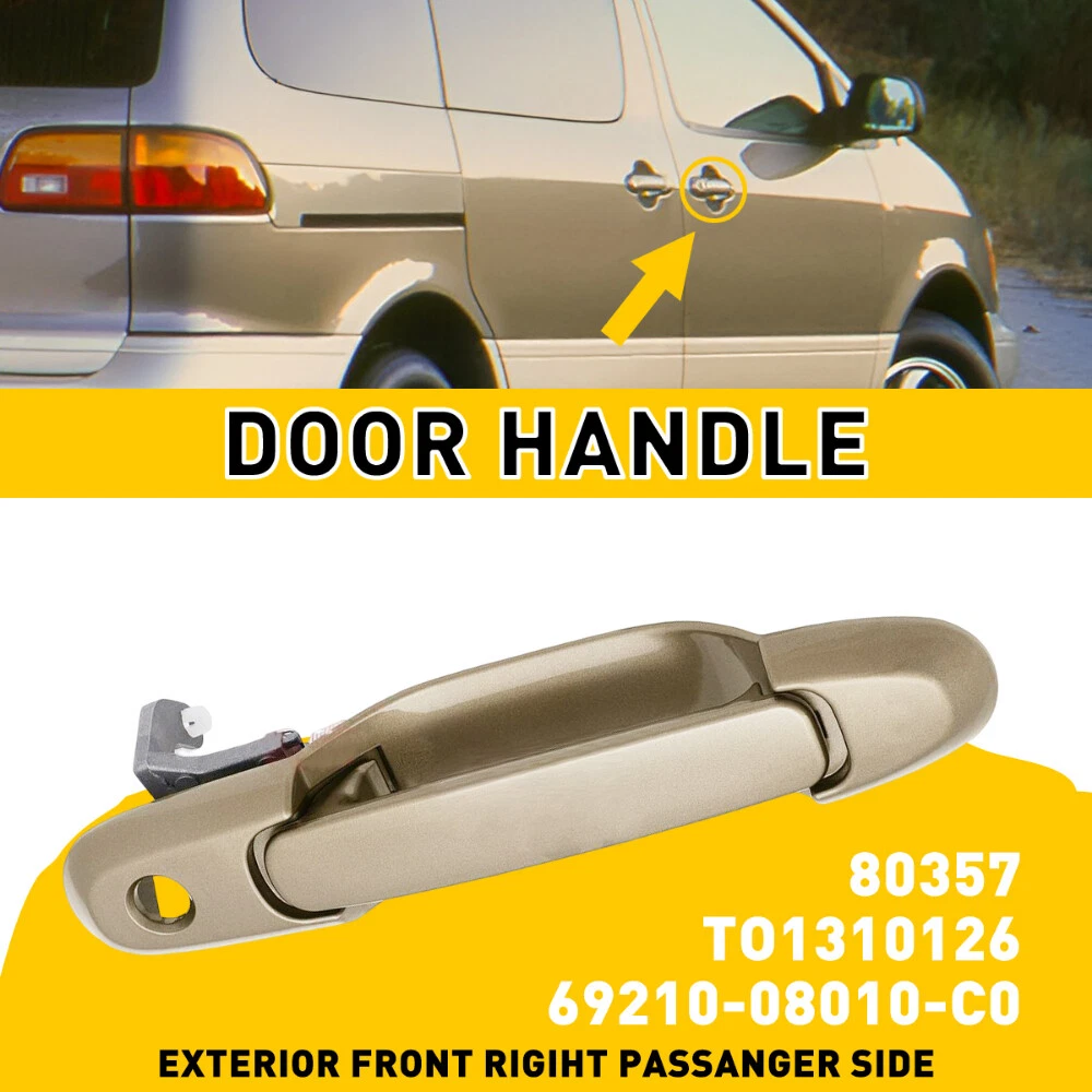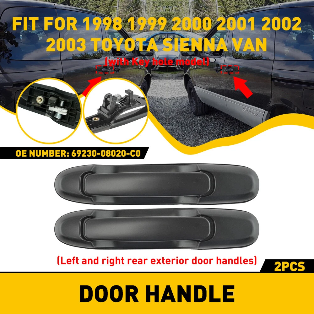 Black 1pcs Rear Product Name: Door Handle Style: OE Style Categories: Outside, Exterior Door, Rear Right or Left Part Number: 69230-08020-C0 Fits Model: 1998 1999 2000 2001 2002 2003 Toyota Sienna Van Description: 100% Brand New Door Handle. High quality material, best performance and reliability. Without modification, direct replacement. Based on the same original-equipment designs. Color:Black Position:Rear Right or Left Package included: 1x Exterior Door Handle Door Outer Sliding Handle Rear /Front Right Left Side For 35855 Sienna Toyota M Black 1pcs Rear Product Name: Door Handle Style: OE Style Categories: Outside, Exterior Door, Rear Right or Left Part Number: 69230-08020-C0 Fits Model: 1998 1999 2000 2001 2002 2003 Toyota Sienna Van Description: 100% Brand New Door Handle. High quality material, best performance and reliability. Without modification, direct replacement. Based on the same original-equipment designs. Color: Black Position: Rear Right or Left Package included: 1x Exterior Door Handle To Fit: with key hole 1998 1999 2000 2001 2002 2003 Toyota Sienna Van OE Number: 69230-08020-C0 " Black 1pcs Front Right Product Name: Door Handle Style: OE Style Categories: Outside, Exterior Door, Front Right Part Number: 80357、69210-08010-C0 Fits Model: 1998 1999 2000 2001 2002 2003 Toyota Sienna Van Description: 100% Brand New Door Handle. High quality material, best performance and reliability. Without modification, direct replacement. Based on the same original-equipment designs. Color: Black Position: Front Right Package included: 1x Exterior Door Handle To Fit: with key hole 1998 1999 2000 2001 2002 2003 Toyota Sienna Van OE Number: 80357、69210-08010-C0 Black 1pcs Front Left Product Name: Door Handle Style: OE Style Categories: Outside, Exterior Door, Front Left Part Number: 69220-08010 Fits Model: 1998 1999 2000 2001 2002 2003 Toyota Sienna Van Description: 100% Brand New Door Handle. High quality material, best performance and reliability. Without modification, direct replacement. Based on the same original-equipment designs. Color: Black Position: Front Left Package included: 1x Exterior Door Handle To Fit: with key hole 1998 1999 2000 2001 2002 2003 Toyota Sienna Van OE Number: 69220-08010 Gold 1pcs Front Left Fit for: 1998-2003 Toyota Sienna Specifications: OE number: 80850, 69220-08010-A0,69220-08010-C0 Color:beige Placement on vehicle: Exterior door handle(front left) Material: Plastic Features: *Perfect fit Comply With OEM Design, Use It With Confidence. *Strict Quality Control All of our handles undergo strict quality control not just before shipping but throughout the production process. *Durable Mainly made of high-quality plastic material to ensure the durability. Packaging include: Door handle*1 Gold 1pcs Front Right Fit for: 1998-2003 Toyota Sienna Specifications: OE number: TO1310126,80357, 69210-08010-C0 Color:beige Placement on vehicle: Exterior door handle(front right) Material: Plastic Features: *Perfect fit Comply With OEM Design, Use It With Confidence. *Strict Quality Control All of our handles undergo strict quality control not just before shipping but throughout the production process. *Durable Mainly made of high-quality plastic material to ensure the durability. Packaging include: Door handle*1 Gold 1pcs Rear Fit for: 1998-2003 Toyota Sienna Specifications: OE number: 80359, 69230-08020-C0 Product color:Beige Placement on vehicle: Exterior door handle(rear left,right) Features: *Perfect fit Comply With OEM Design, Use It With Confidence. *Strict Quality Control All of our handles undergo strict quality control not just before shipping but throughout the production process. *Durable Mainly made of high-quality plastic material to ensure the durability. Packaging include: Door handle*1 White 1pcs Rear Fit for: 1998-2003 Toyota Sienna Specifications: OE number: 80359, 69230-08020-C0 Product color:White Placement on vehicle: Exterior door handle(rear left,right) Features: *Perfect fit Comply With OEM Design, Use It With Confidence. *Strict Quality Control All of our handles undergo strict quality control not just before shipping but throughout the production process. *Durable Mainly made of high-quality plastic material to ensure the durability. Packaging include: Door handle*1 White 1pcs Front Right Fit for: 1998-2003 Toyota Sienna Specifications: OE number: TO1310126,80357, 69210-08010-C0 Color:White Placement on vehicle: Exterior door handle(front right) Material: Plastic Features: *Perfect fit Comply With OEM Design, Use It With Confidence. *Strict Quality Control All of our handles undergo strict quality control not just before shipping but throughout the production process. *Durable Mainly made of high-quality plastic material to ensure the durability. Packaging include: Door handle*1 White 1pcs Front Left Fit for: 1998-2003 Toyota Sienna Specifications: OE number: 80850, 69220-08010-A0,69220-08010-C0 Color:White Placement on vehicle: Exterior door handle(front left) Material: Plastic Features: *Perfect fit Comply With OEM Design, Use It With Confidence. *Strict Quality Control All of our handles undergo strict quality control not just before shipping but throughout the production process. *Durable Mainly made of high-quality plastic material to ensure the durability. Packaging include: Door handle*1 ABOUT US Door Outer Sliding Handle Rear /Front Right Left Side For 35855 Sienna Toyota M Black 1pcs Rear Product Name: Door Handle Style: OE Style Categories: Outside, Exterior Door, Rear Right or Left Part Number: 69230-08020-C0 Fits Model: 1998 1999 2000 2001 2002 2003 Toyota Sienna Van Description: 100% Brand New Door Handle. High quality material, best performance and reliability. Without modification, direct replacement. Based on the same original-equipment designs. Color: Black Position: Rear Right or Left Package included: 1x Exterior Door Handle To Fit: with key hole 1998 1999 2000 2001 2002 2003 Toyota Sienna Van OE Number: 69230-08020-C0 " Bl