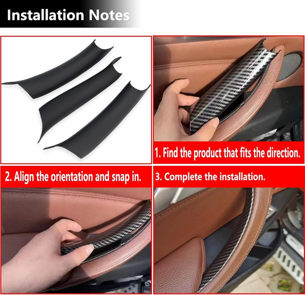 About this item 【Adaptation Model】Compatible with X5 Series F15/F85 (2014-2018) and X6 Series F16/F86 (2015-2018). Please see product description for detailed models. 【Function】It can perfectly cover the handle position of the whole car, with precise original car data for a seamless fit. Effectively solves the problem of aging and stickiness of the original door handle while improving the overall texture of the vehicle. 【High Quality】Made of high-quality ABS+PC material, it feels comfortable, is not easy to age, easy to clean, and has a long service life, perfectly matching the original vehicle. 【Easy to install】Installation is simple and requires no disassembly; it easily snaps on inside the door handle for quick installation. Package Dimensions: 11 x 3.3 x 2.3 inches.