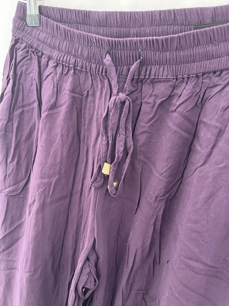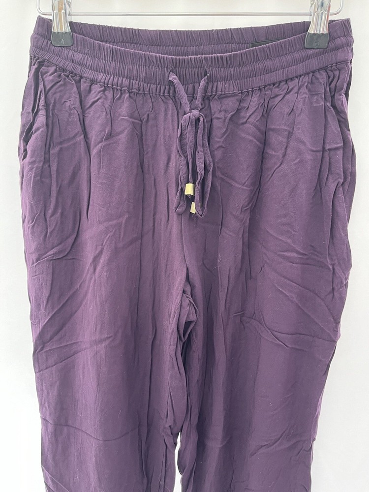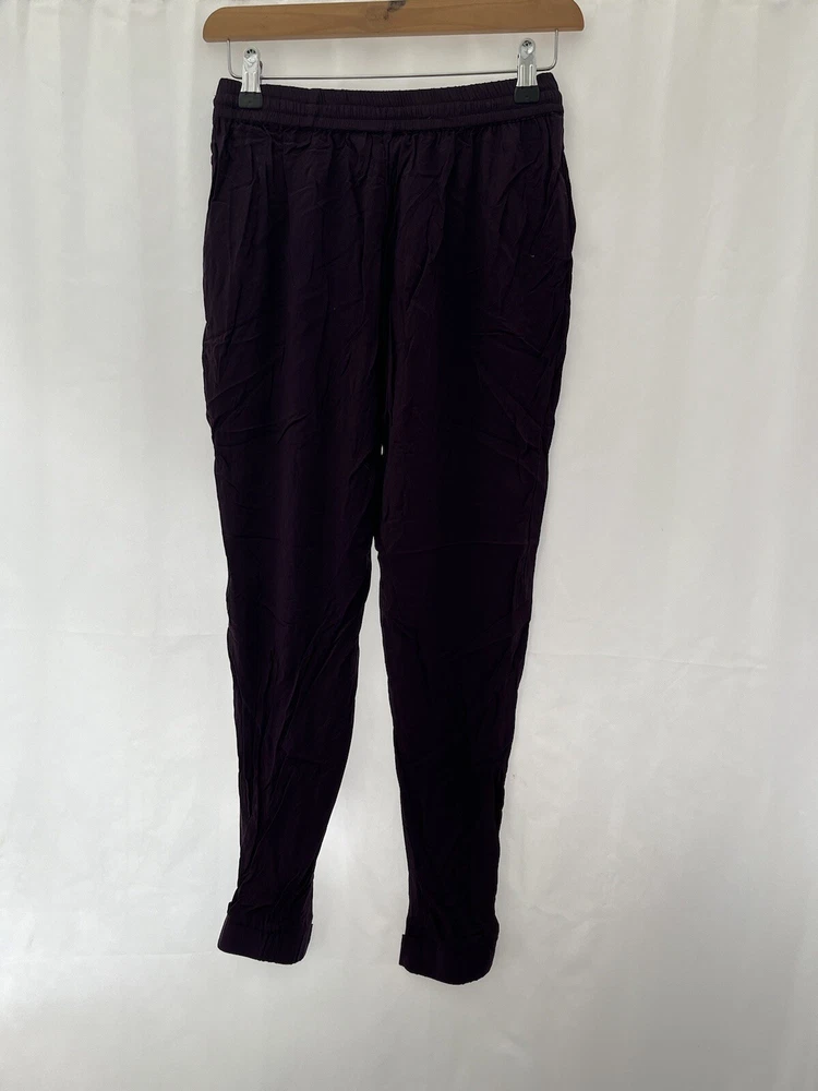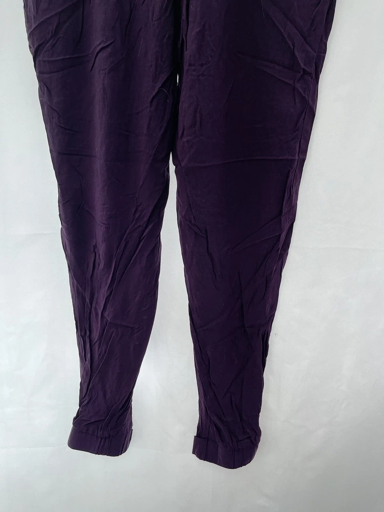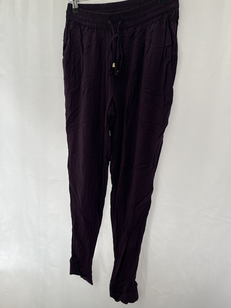 Size Type: Regular Fabric Type: Chambray Leg Style: Tapered Type: Trousers Brand: Dorothy Perkins Closure: Drawstring Colour: Purple Material: Viscose Department: Women Size: 8 Inside Leg: 26 in Style: Harem