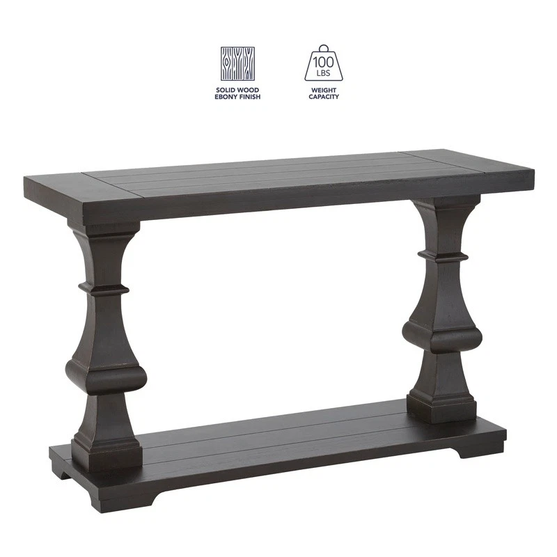 You may also like Indoor Round End Table Black Metal Cross Legs Movable Tray Top Accent Table New 46.47 USD 48.92 USD Free shipping 5% off Oval Coffee Table W/ Shelf Indoor Storage MDF Furniture Classic Design New 121.4 USD 127.79 USD Free shipping 5% off Wood End Table W/ Drawer Open Shelf Living Room Bedroom Indoor Storage New 75.73 USD 79.72 USD Free shipping 5% off Stylish Modern Coffee Table W/ Storage Shelf Engineered Wood Living Room New 89.59 USD 94.3 USD Free shipping 5% off Graystone Coffee Table Storage Shelf Industrial Style Indoor Furniture New 100.17 USD 105.44 USD Free shipping 5% off Rustic Rectangle Console Table W/ Arched Supports Space-Saving Indoor Furniture 271.71 USD 286.01 USD Free shipping 5% off Town Square Coffee Table W/ Shelf MDF Open Storage Indoor Furniture Black Wood 154.68 USD 162.82 USD Free shipping 5% off Nesting End Tables Set of 2 Solid Wood Legs Indoor Furniture Easy Assembly New 107.34 USD 112.99 USD Free shipping 5% off Modern Coffee Table Storage Cabinet W/ Open Shelf Dark Walnut Furniture New 79.12 USD 83.28 USD Free shipping 5% off Cayla Storage Coffee Table Wooden Accent Table W/ Drawers Indoor Vintage Design 208.17 USD 219.13 USD Free shipping 5% off Geometric Coffee Table Tempered Glass Top Brass Metal Frame Indoor Accent Table 127.53 USD 134.24 USD Free shipping 5% off Two-Tone Contemporary Wood End Table W/ Storage Shelf Home Living Room New 66.12 USD 69.6 USD Free shipping 5% off Architectural design and simplicity become one in the Dory Occasional Table Collection from . The Dory Sofa Table features a plank effect top accented by the unique pedestal base for a look that can't be ignored. Sturdily constructed of hardwood solids and mindi veneers in a subtle ebony finish, the table also has a bottom base shelf for extra storage or display. Your purchase includes one sofa table. Plank effect top Architectural design elements Ebony finish Bottom shelf for additional storage or display Product Dimensions: 30" H x 18" W x 48" D You may also like Infant Changing Table Dresser 2 Drawer Storage Shelves Baby Nursery Furniture US 226.08 USD 237.98 USD Free shipping 5% off 15-Piece Non Stick Cookware Set Colorful Heat Resistant Lacquer Dishwasher Safe 126.62 USD 133.28 USD Free shipping 5% off 13 Gal Trash Bags 1000 Count Kitchen Dustbins Liners Black Plastic Leak-Proof US 74.35 USD 78.26 USD Free shipping 5% off 16oz Clear Plastic Disposable Cups 1000ct Iced Coffee Smoothies Crack Resistant 95.69 USD 100.73 USD Free shipping 5% off Tufted Bench Cushion 36in x 14in Waterproof Stain Resistant Indoor Outdoor New 117.74 USD 123.94 USD Free shipping 5% off Hydroponic 39W T5HO Indoor Plant Grow Light Fixture W/ NanoTech Reflector New 78.02 USD 82.13 USD Free shipping 5% off Powerful Corded Drill 55Amp Variable Speed Compact Onboard Bit Storage New 72.13 USD 75.93 USD Free shipping 5% off Slim 3-Tier Mesh Rolling Utility Cart Bathroom Kitchen Office Storage Trolley US 54.37 USD 57.23 USD Free shipping 5% off 30Qt Portable Cooler Plastic Outdoor Activities Camping Easy Clean W/ Cup Holder 49.95 USD 52.58 USD Free shipping 5% off Lockable Jewelry Storage Chest Wood Organizer W/ Removable Tray & Travel Case US 56.5 USD 59.47 USD Free shipping 5% off Biometric Handgun Safe W/ LCD Temperature Display USB Power 3 Access Modes Black 117.78 USD 123.98 USD Free shipping 5% off Industrial Metal Bar Cart Rolling Drink Storage Wooden Shelves Wine Glass Rack 51.74 USD 54.46 USD Free shipping 5% off