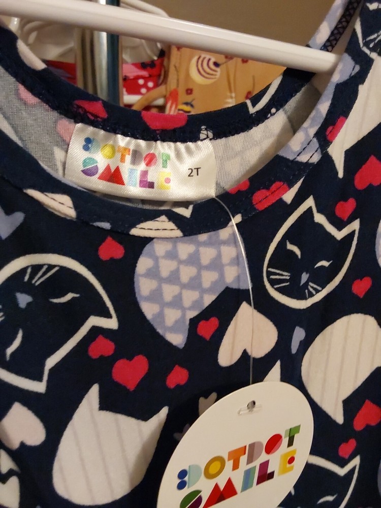 Dot Dot Smile 2T Cat Print Toddler Dress with Ruffle Cap Sleeves and Knee Length