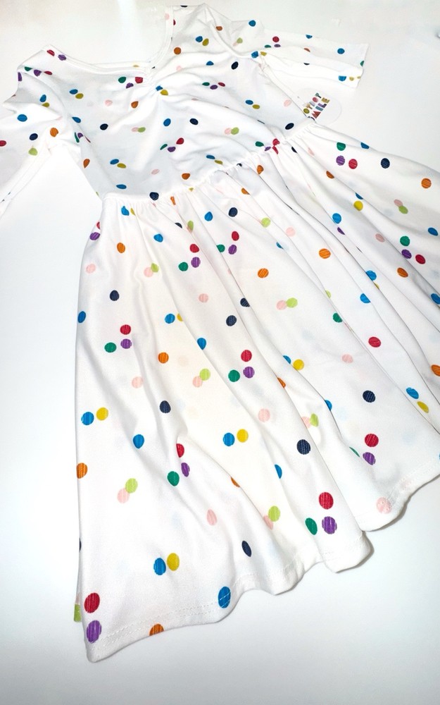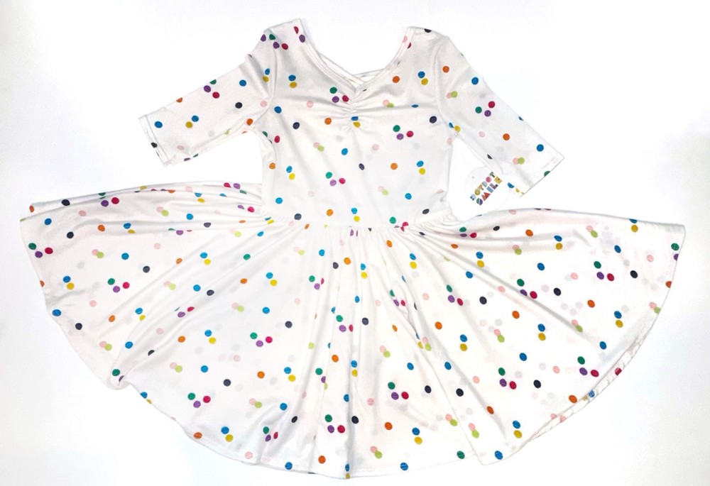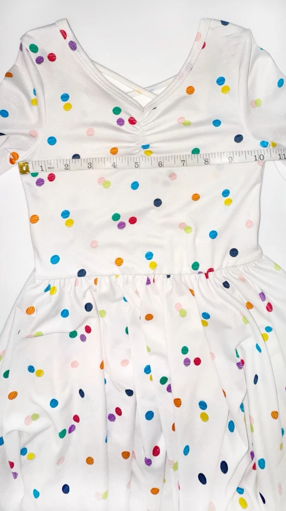 DotDotSmile Girls 3/4 Polka Dot Ballerina Twirl Dress White & Multicolor NWT