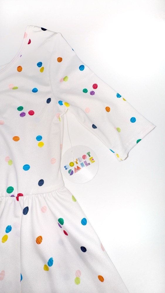 DotDotSmile Girl’s White Ballerina Twirl Dress Size 3/4 White background with Green/Red/Purple/Orange/Yellow/Dark Blue/Light Blue/Green/Lime Green/Pink polka dots. New With Tags. Designed for comfort and movement, this dress is made from soft, breathable fabric that keeps little ones cool and comfy all day long. Very light and airy. Whether it’s a picnic in the park, a playdate, or a special occasion, the DotDotSmile Dress is a must-have! Measurements (approximate & laying flat) Length: 22.5” Waist: 9.5” Chest (armpit to armpit): 10” Neck Opening: 6” Sleeve: 8.5” Please refer to photos for measurements as well All photos are of exact item you will be receiving. Please review the photographs because you will receive exactly what you see in the photographs provided. We are not professionals, experts or dealers in these items, so please base your purchase on your research and your satisfaction. This item is pre-owned and may have imperfections, scratches,and other such blemishes associated with their age and use that might not be visible. If you want a specific photo or close-up of the item, please do not hesitate to ask. Please understand that describing the condition of an item can be subjective and what might not be important to me may be for you. Keeping that in mind, please feel free to ask questions before purchasing because all sales are final. We will absolutely answer your questions as promptly as we can, and more importantly, honestly.
