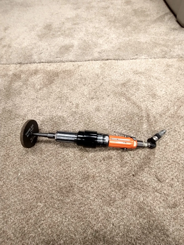 This Dotco Extended Die Grinder is a heavy-duty tool designed for precision grinding in difficult to access areas. With a high-speed motor and 12,000 RPM capability, this grinder can handle tough jobs with ease. The 3/8 tha spindle thread ensures secure mounting and the brand's reputation for quality ensures long-lasting performance. Whether you're a professional mechanic or a DIY enthusiast, this grinder is the perfect addition to your toolkit. These are not close outs they are personal tools and have been well maintained. This Grinder is like new old stock. You will not be disappointed. I will offer 1 year warranty. Stops working I will rebuild it you pay for shipping .but this one will run for 20 years easy.