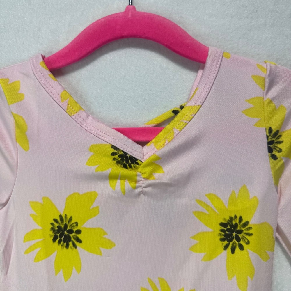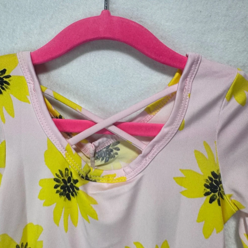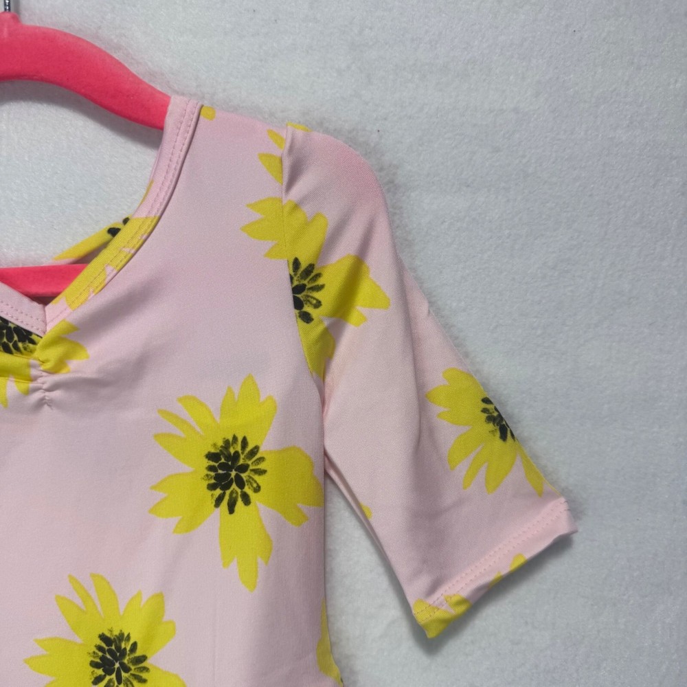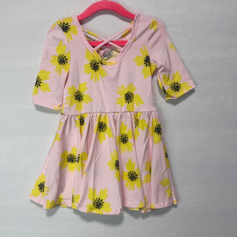 Dotdotsmile Ballerina Dress New with tags cool slinky material v neck 3/4 length sleeves Crossed straps in the back elastic around the waist Pink with Yellow Sunflowers 461 Size: Girls 2T Condition: New With Tags