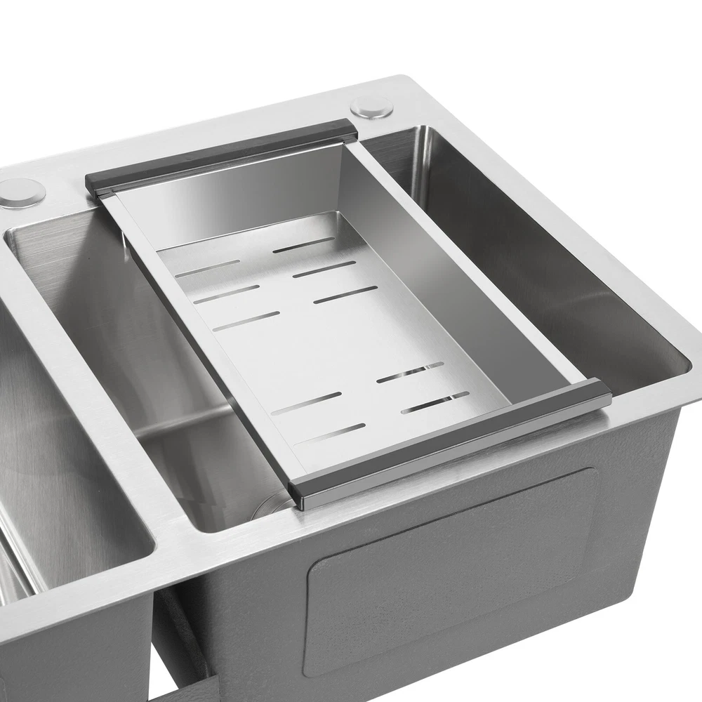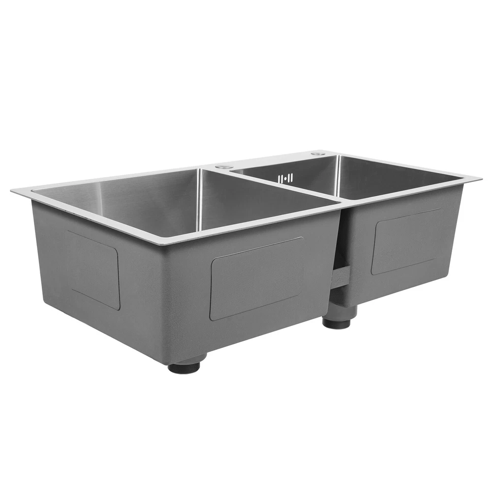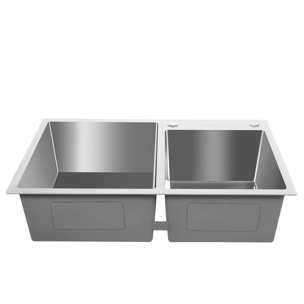 Description Does the already crowded kitchen often bother you with issues such as insufficient space, clogged sinks, and difficulty in cleaning? Then I suggest taking a look at our kitchen sink! Its smooth and sturdy material ensures durability while also making it easy to clean. The large capacity sinks make ideal use of kitchen space, which can easily solve the above problems and help you create a cleaner kitchen. Key Features Kitchen Assistant: With a balanced combination of practicality and aesthetics, it can assist with a series of cleaning activities. Whether for commercial or household use, its thoughtful design can provide convenience, and save time and energy. Large Capacity: Two spacious sinks (13.8*13.8*7.87in; 11.81*11.81*7.87in) can accommodate most bowls and plates, providi Double Bowl Composite Drop-in Kitchen Sink 2 Bowl Set Stainless Steel Description Does the already crowded kitchen often bother you with issues such as insufficient space, clogged sinks, and difficulty in cleaning? Then I suggest taking a look at our kitchen sink! Its smooth and sturdy material ensures durability while also making it easy to clean. The large capacity sinks make ideal use of kitchen space, which can easily solve the above problems and help you create a cleaner kitchen. Key Features Kitchen Assistant: With a balanced combination of practicality and aesthetics, it can assist with a series of cleaning activities. Whether for commercial or household use, its thoughtful design can provide convenience, and save time and energy. Large Capacity: Two spacious sinks (13.8*13.8*7.87in; 11.81*11.81*7.87in) can accommodate most bowls and plates, providing you with more space to perform different cleaning tasks. Easy to Clean: The smooth surface, round corners, and anti-condensation coating after wire drawing treatment allow you to easily remove stains with a damp cloth or sponge dipped in a little detergent. The deodorant drainage filter can collect food and debris for easy handling, and prevent clogging of drainage pipes Sturdy & Durable: It is mainly made of 201 stainless steel, combined with wire drawing technology, it has good anti-corrosion, rust prevention, and scratch resistance. Free Installation: According to your decoration preferences, you can choose to install independently or embedded to better adapt to different decoration situations. Quiet Work: The bottom soundproof pad can reduce the noise from sewage discharge, providing you with a quieter environment. Modern and Simple: The low-key and luxurious silver color, delicate connections, and smooth streamlines give this sink set a modern and simple appearance, which fits most household styles. Quality Service: We are honored that you have chosen our product. We have sufficient confidence in the quality of the product so that you can buy it confidently. But if you have any questions, you can contact our customer service, he will patiently answer and solve your problems. Details Overflow Outlets: The height-appropriate overflow outlets prevent water flow from leaking out due to high water levels, and timely discharge of excess water. Drain Basket: The equipped drain basket can help you dry dishes, fruits, vegetables, etc. while keeping the countertop clean. Large Drainage Hole: The 3.35'' drainage port can efficiently discharge sewage in a short period and is not prone to blockage. Drainage Line: The X-shaped drainage line guides water to the drainage outlet for quick drainage to keep the sink clean and dry. Application It is an ideal choice for places such as garages, laundry rooms, basements, terraces, bars, kitchens, bathrooms, farms, backyards, commercial restaurants, etc. It is very suitable for manually cleaning food, fruits, vegetables, etc. Specifications Material: 201 Stainless Steel, Rubber Color: Silver Style: Modern Shape: Rectangle Surface Treatment: Wire Drawing Assembly Required: Yes Installation Type: Independent, Embedded Number of Sinks: 2 Drain Diameter: 8.5cm/3.35in Large Sink Inner Size: 35*35*20cm/13.8*13.8*7.87in Small Sink Inner Size: 30*30*20cm/11.81*11.81*7.87in Drain Basket Size: 36*20*5cm/14.17*7.87*2in Gross Weight: 8.35kg/18.4lbs Net Weight: 6.95kg/15.32lbs Product Size: 78*43*21cm/30.7*17*8.26in Package Size: 81*48*26cm/31.9*18.9*10.23in Package Included 1*Kitchen Sink 1*Drain Basket A Set of Drainage Pipes All Accessories for Assembly Notes Please note that this product cannot be connected to the dishwasher. Please do not use corrosive detergents or strong alkaline or oxidizing chemicals such as soda, bleaching powder, sodium hypochlorite, etc., or use sharp objects such as steel wire balls to clean the surface of the product. Please allow the slight color difference caused by the shooting light and 1-3cm error due to manual measurement, and make sure you do not mind before you order. Payment Delivery details Terms of sales About us Contact us Payment We accept ebay payment 。 Fees such as import duties, taxes are not included in the item price or shipping costs. These charges are the buyer's responsibility. Delivery details Shipping: 2-9 working days to: USA Terms of sales We maintain high standards of excellence and strive for hundred percent customer satisfaction. Feedback is very important to us. We hope that you contact us immediately before you give neutral or negative feedback, so that we can address your concerns. It is impossible to address issues if we do not know about them! About us Your satis faction is our ultimate goal. We work hard to earn your trust and future business. Our certified technicians have tested each item before shipping. The unit comes with 1 year limited warranty on all manufacturing defects. a) If you receive a defective item, you may return it or ask for a discount. Please contact us within 14 days after you receive the package. b) What you returned must be intact and in its original packaging as re? u. Customer is responsible for shipping costs of the returned item. c) We wil