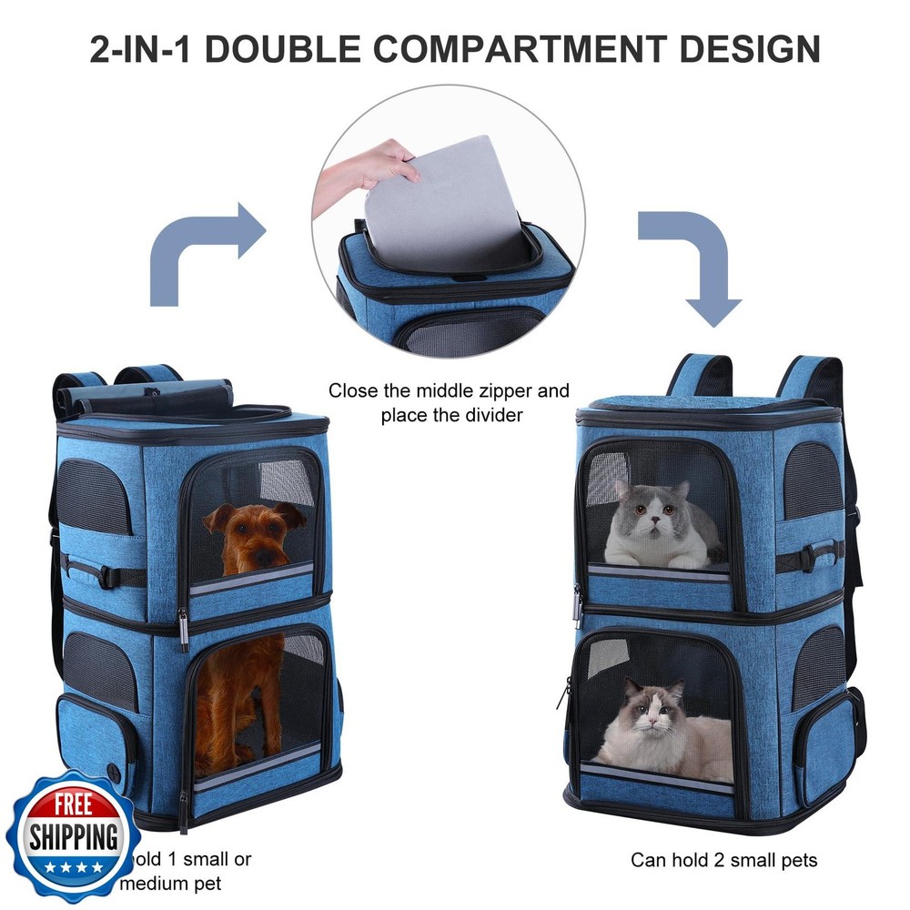 Double Cat Carrier for 2 Cats,Dog Backpack Carrier for Medium Dogs,Double Compartment Pet Carrier Backpack for Dual Pets,for Outdoor Traveling/Stroll and Picnic (Blue) Features ✅【DUAL CAT BACKPACK CARRIER DIMENSION】 The Grey Colour of 2 in 1 Double Compartment Cat Backpack Carrier Perfect for 2 Pet up to 12 Pounds Each Pet( Single Compartment Pet Backpack Dimension 15" L x 11.5" W x 11"H ),or Single Medium/Large Pet Up to 24 Pounds( 2 in 1 Cat Backpack Expand Dimension 15" L x 11.5" W x 22"H ) ✅【STRONG QUALITY】 : The Discreet Dual Portable Cat Carrier Backpack for Two Cats Made with 600D High Quality Standard Oxford Material,Easy to Clean,Lightweight and Tidy,The Pet Carrier Backpack With Strong Structure And Enough Activity Space for Puppies / Cat / Dogs / Chihuahua ✅【HUMANIZED DESIGN】 :The Double Compartment Dog Backpack Carrier With 7 Well Breatable Mesh Window Ventilation Design,2 Pocket Storage,Perfect for Airflow and Nice Vision,Comfortable Floor Lining Mattress,Great for Rest And Relaxation. ✅【SAFTY AND COMFORTABLE】 : The Pet Carrier Backpack With Two Prominently Reflective Stripe Design on The Straps,Safty for Your Travel While in the Evening ✅【LARGE SPACE】:Suitable for 2 Cats or for one Medium Dogs,Specially Double Compartments Cabin for You Have a Relaxing and Enjoyable Outdoor Experience Shipping Free & Fast Shipping: We offer free shipping to most of the USA with a normal delivery time of 3-7 days. However, due to the current situation, additional delivery time (up to 3 weeks) may be required for some items. Alternative Carriers: We may use alternative carriers (e.g., USPS, FedEx, UPS) to ensure your package arrives safely and on time. Due to the use of multiple carriers, we are unable to provide a tracking number automatically. Handling Time: Orders are processed and shipped within 1-2 business days of receiving cleared payment. Shipping Restrictions: Shipping to Alaska, Hawaii, Puerto Rico, Guam, and other US territories may incur shipping charges or delivery restrictions. Please contact us before ordering, or your order can be refunded/cancelled. State Restrictions: Certain items may not be shipped to California due to state regulations. Contact for Tracking Updates: If you require tracking updates or have any concerns about the delivery of your order, please feel free to contact us, and we will be happy to assist you. Return Policy 30-Day Hassle-Free Returns: If you are not completely satisfied with your purchase, you can return the item for free within 30 days of receiving it for a full refund or exchange. Easy Return Process: Contact us, and we will provide you with a prepaid return shipping label and detailed instructions. No Restocking Fee: There are no restocking fees for returns. However, the buyer is responsible for return shipping costs if the return is not due to a seller"s error. Refund Processing: Refunds will be processed within 1 business day of receiving the returned item in its original condition. Feedback Your feedback is extremely important to us. We strive to provide the best products and customer service possible. If you are satisfied with your purchase, please take a moment to leave us a positive review. If you have any concerns or issues with your order, please contact us before leaving negative feedback. We are committed to resolving any problems and ensuring your satisfaction. Contact Us If you have any questions or concerns, please feel free to reach out to our customer support team. You can contact us through the eBay messaging system. We are available Monday to Friday, 9:00 am to 5:00 pm EST, and we will do our best to respond to your inquiry within 24 hours. Thank you for supporting our small family business!