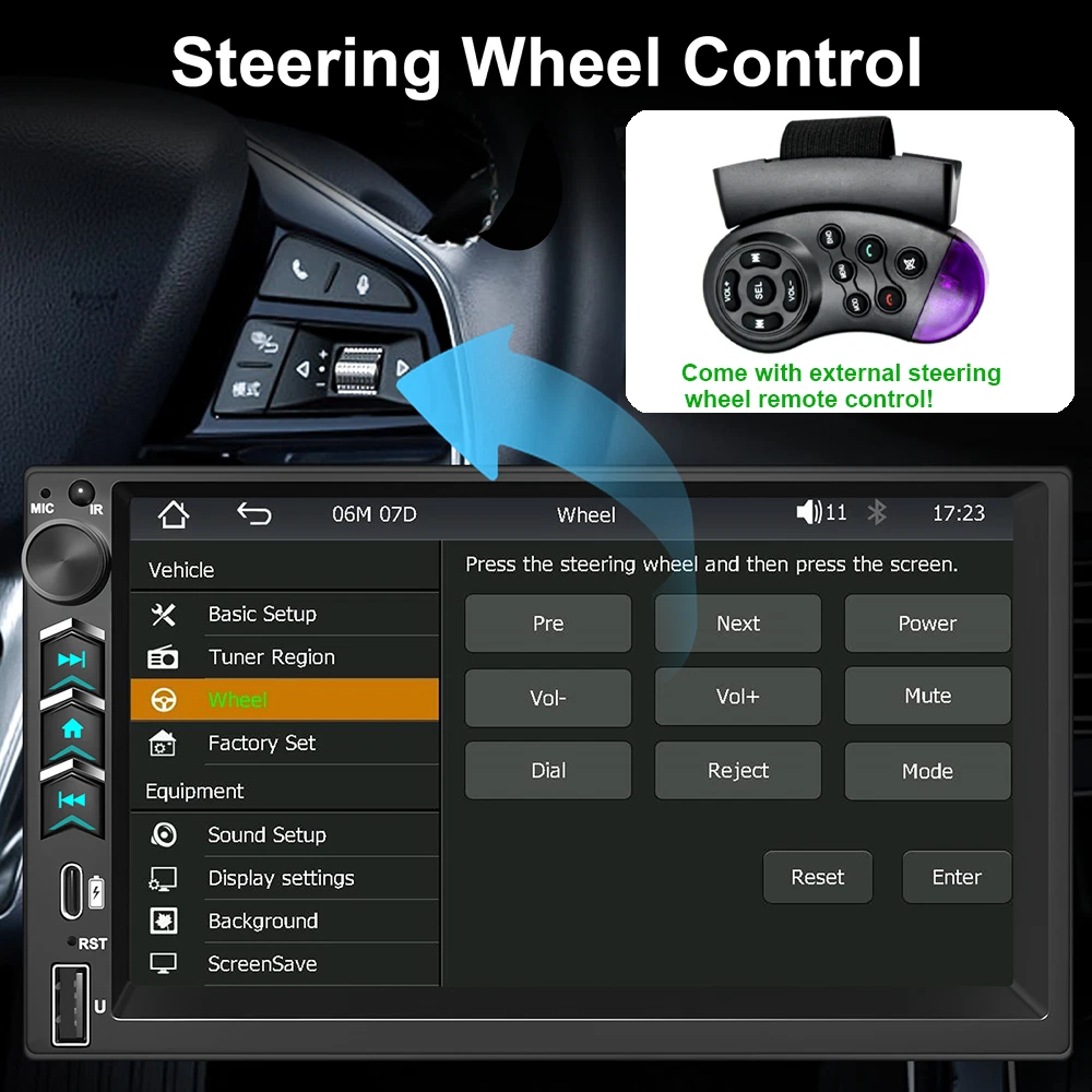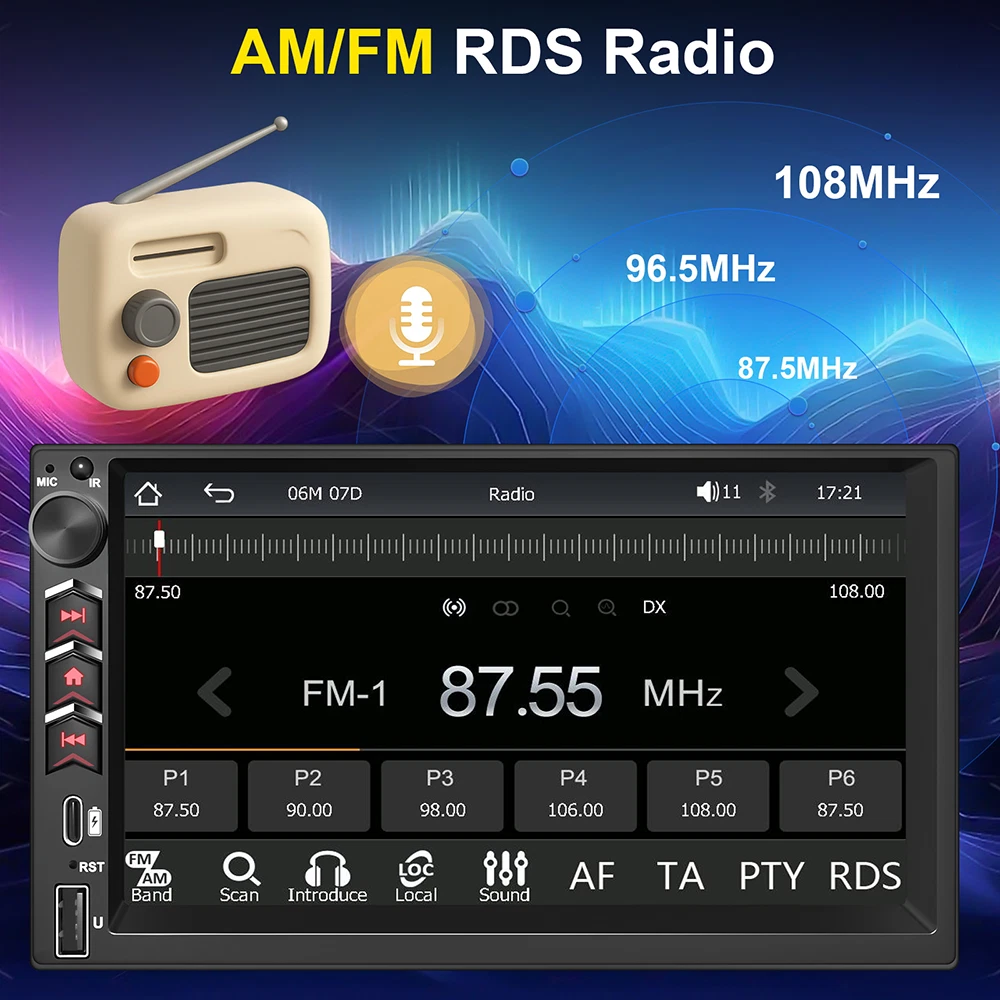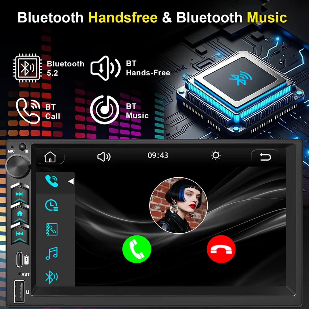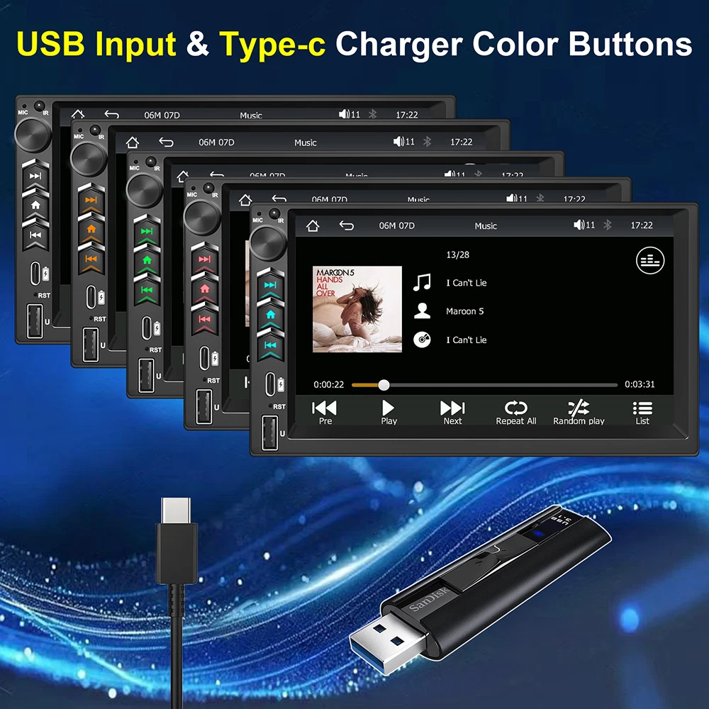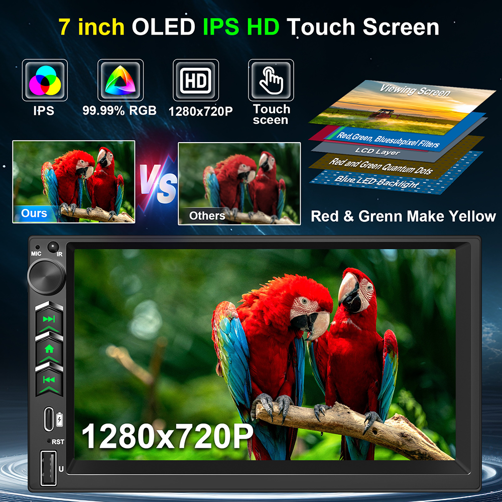 Double 2 Din Car Stereo Radio MP5 Player Wireless Apple CarPlay & Android AUTO Features: 1. Wireless/Wired Apple CarPlay & Android AUTO 2. Smartphone Mirror Link Android/iOS 3. 10 Band EQ, DSP 4. Bluetooth 5.0 5. 7 inch Capacitve Multi-touch Screen 6. Reverse Rear View Camera Input(Camera included) 7. Audio Output, Video Output, Audio Output, Audio Input 8. Original Car Steering Wheel Control 9. AM/FM RDS Radio 10. U disk Playback (audio/video/photo) 11. Type-c Charger 12. 7 Colors Key Light Product details: Model: F133-9360 Unit Size: Double 2 Din Voltage: DC 12V Type: Car MP5 Player System: Linux F133 Configuration: Full capacitive touch screen Solution: 8268K Screen size: 7 inches Resolution: 1280x720 Panel size:178x100mm Button Lighting: Colored lights Host depth: 2.56 inch/65mm Single weight: 680g Mirrorlink: Miirorlink (Android / iPhone) Carplay & Android auto: Support wireless or wire connection Radio: FM / AM RDS Radio chip: ZT0811 Power: 60W Audio Output: 4x 50W Temperature: -10 ~ 60 ℃ Reverse image: Support Brake reminder: Support Steering Wheel Control: Support Bluetooth: version 5.2 Radio frequency: FM 87.5 ~ 108MHz AM 522 ~ 1620KHZ Video output: Support USB interface: Front panel USB 3.0 Reset Button: Have Button: Mechanical buttons RCA terminal: 2 audio output, 1 reverse input, 1 video input, 2 video output Audio Format: MP3 / WMA / AAC / APE / OGG / M4A / RA / WAV Video Format: H264 DIVX HD (720P 1080I 1080P) AVI / FLV / MKV / RMVB / MPEG / ASF / TS / H264 / QT Picture format: JPEG / PNG / BMP / GIF / TIFF Language: English / Spanish / Portuguese / Simplified Chinese / Chinese / Traditional Chinese / German / French / Turkish / Japanese / Russian / Italian / Polish / Dutch / Danish / Greek Package Included: 1 x Car MP5 Player 2 x Power Cable 1 x SWC Remote control 1 x Installation Bracket 1 x Microphone 1 x User Manual 1X Back Up camera