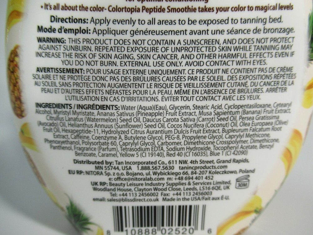 Double Dark Pineapple Sugar Brown Sugar Tanning Lotion 13.5 oz 400X Bronzing Size: 13.5 fl. oz. 400X Ultra Advanced Bronzing Juicebomb Colortopia Peptide Smoothie Blame it on the juice. When you set out to make the juiciest, darkest lotion on Earth good things are bound to happen. Magical amounts of pineapple juice were whipped into this super sweet recipe, resulting in mind-blowingly beautiful color and super soft skin. The sweeter the juice, the better the bronze. 400X Ultra Advanced Bronzers provide darkest color imaginable. Juicebomb recipe utilizes huge amounts of pineapple and other fruits for optimal conditioning. It’s all about the color- Colortopia Peptide Smoothie takes your color to magical levels. Fragrance: Tahitian Pineapple Sugar We are not responsible for claims from manufacturers to the results of products.. Shipping Policies We ship within Two business days of payment, usually sooner. We use a selection of shipping services such as UPS, FedEx, USPS etc. Local pickups and combined shipping options are not provided at this time Return Policy You can return a product for up to 30 days from the date you purchased it. Any product you return must be in the same condition you received it and in the original packaging. Please keep the receipt. Customer Service Please allow us to resolve any issues before leaving feedback. We will resolve any issue! Please allow up to 24 hours for a response!