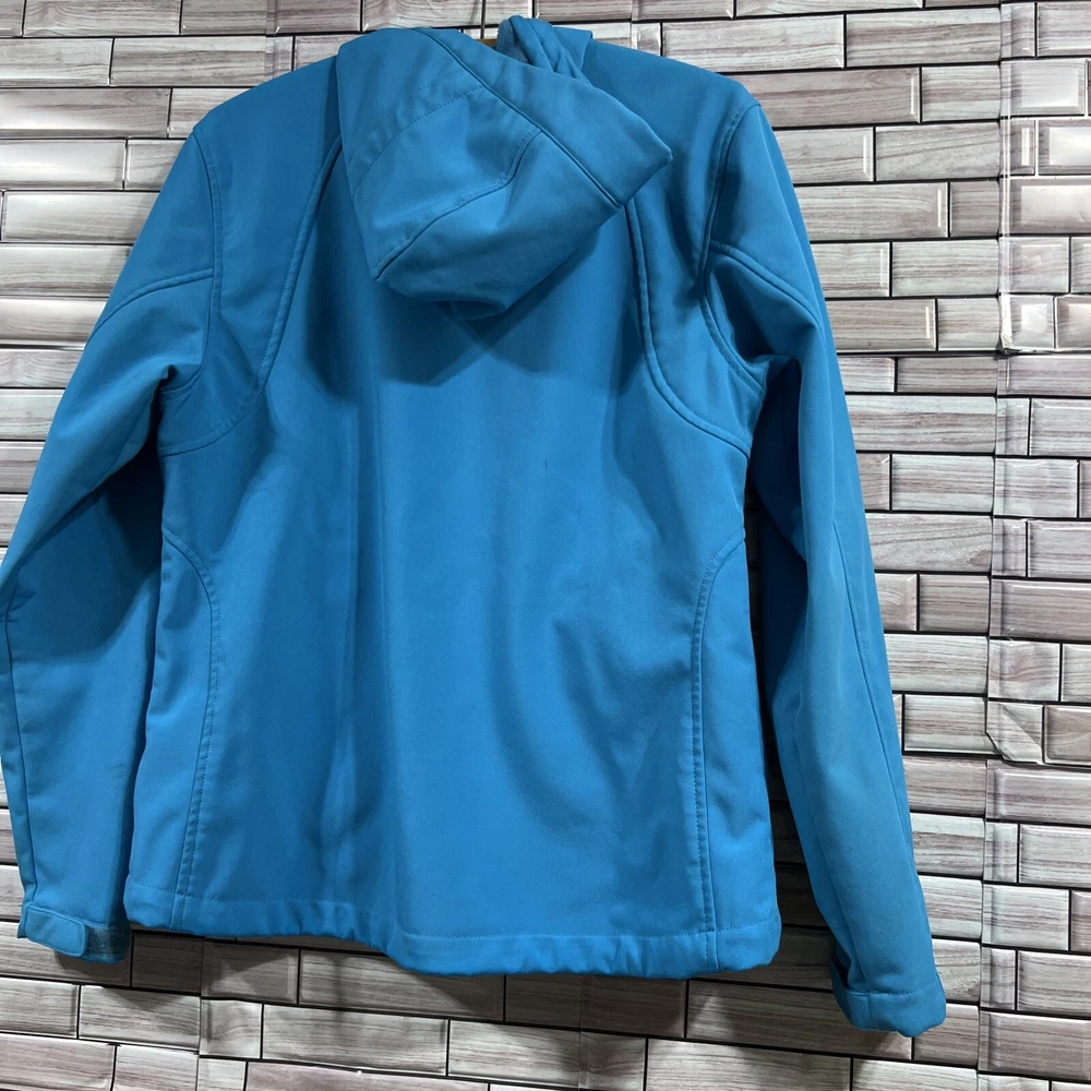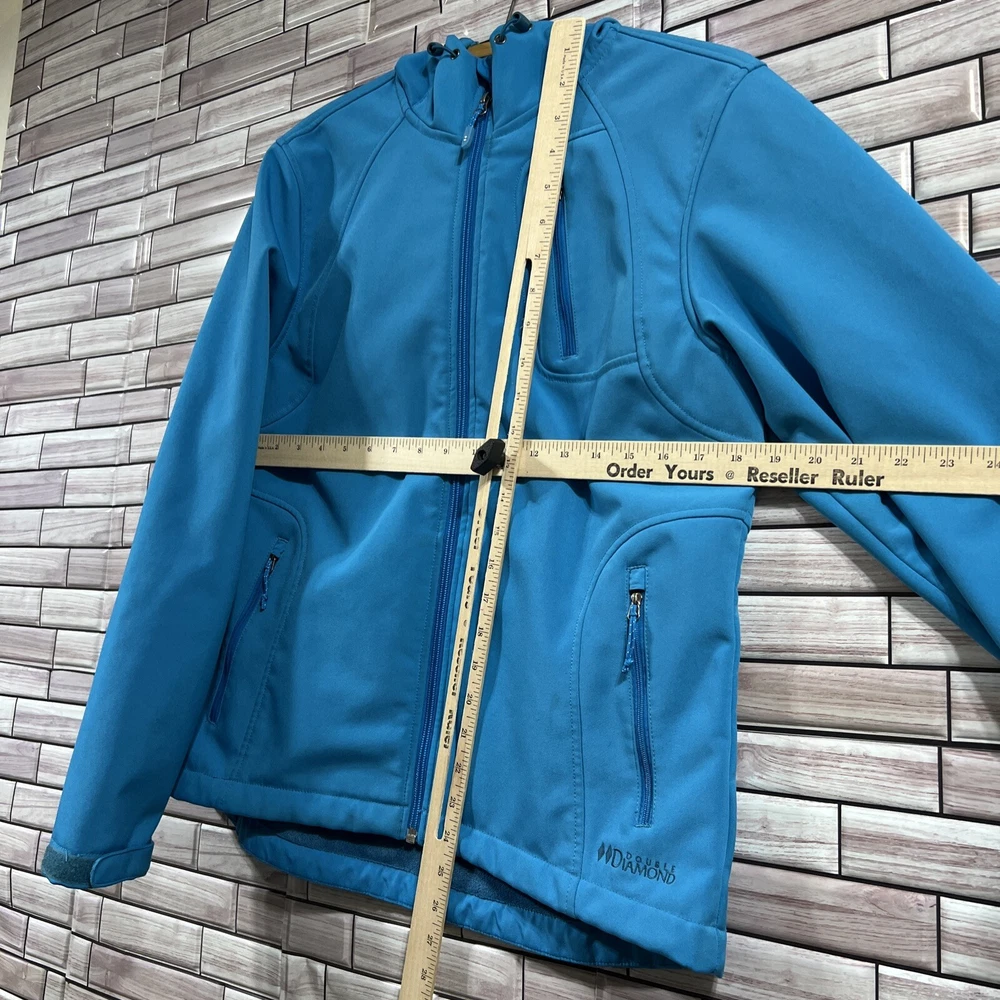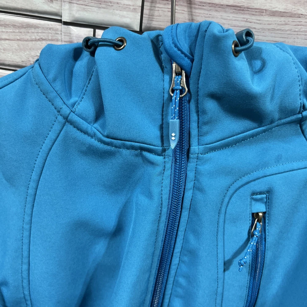 Double Diamond womens M jacket blue turquoise full zip hood soft shell stretch 221-5