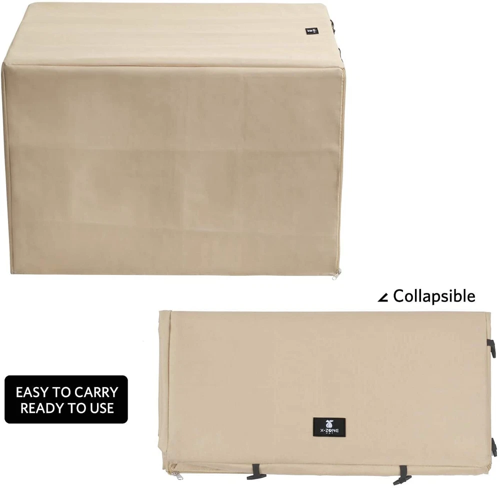 【Dimension】: 30”(L)x 19” (W)x 21”(H). Universal fits your 30" crate well.Package included 1 x crate cover (without metal crate) 【Quiet, Privacy& Security】The crate cover can provide pets with a quiet, private and relaxing environment, allowing them to rest better in this comfortable environment 【Heavy-Duty & Durable Material】Durable dog kennel cover made of tear resistant and water resistant 600D polyester with PVC coating,which is windproof and durable, prevent damage caused by pet scratching 【Multiple Zippered Panels】Fits for door open at different angles, you can choose the angle of opening the door according to your needs, which is convenient for pets to enter and exit, and better ensure ventilation 【Easy to Use】Velcro and toggle lock can fix the roller blinds very well, easy to use, and the cover can be folded when not in use for easy storage