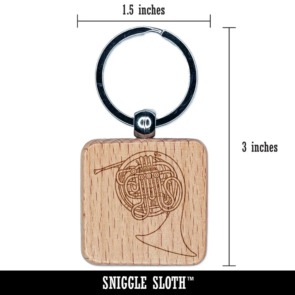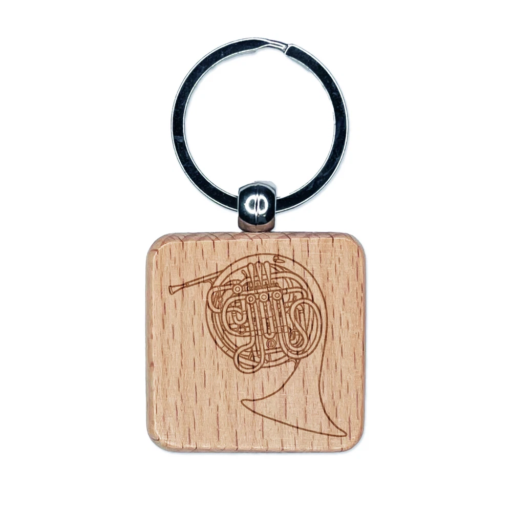 Double French Horn Brass Musical Instrument Engraved Wood Square Keychain