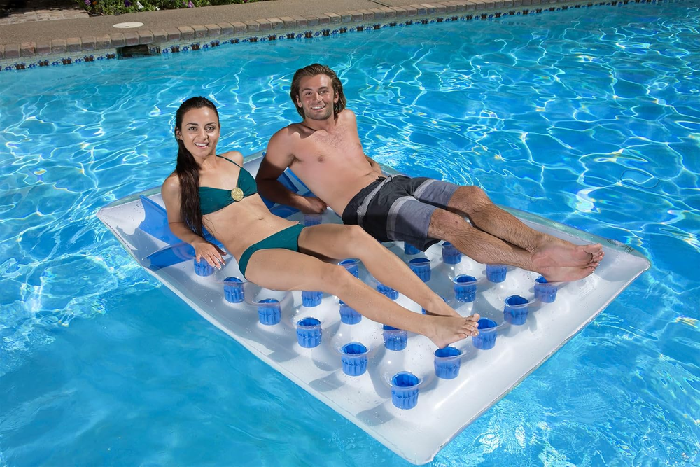 Traditional French-style construction pool mattress with 36 soft pockets that trap water for cooling relaxation when pool lounging Extra-large floatie, big enough for 2 adults to pool lounge all day in comfort, great for reading, floating, relaxing, sun bathing and more Inflatable pool float features a large profile and full-width pillow; mattress is constructed from durable 14-gauge vinyl and provides on-the-water stability with room to spare Pool raft boasts a clear vinyl top that covers a white vinyl bottom with bright color pockets to pop off the water; great for pool parties, beach, lake or river Please note: item comes in surprise color either pink, yellow or blue and measures 78-inches by 56-inches, deflated Product Description The Double French Pocket Swimming Pool Inflatable Mattress by Poolmaster is fit for two serious pool loungers with a traditional French-style construction. Fun for the whole family, this pool floatie features 36 soft tufted pockets in bright contrasting colors that are integrated and designed to trap water, providing cooling comfort while lounging. Featuring a clear vinyl top covering a reflective silver vinyl, all in durable 14-gauge vinyl, this fun pool float is sure to be a hit in any summer fun setting. Easy to inflate and deflate, take this portable pool float to the beach, lake, river or pool. Also great for camping and picnicking. Measures 78-inches x 56-inches, approximate deflated size. Comes in SURPRISE color; pink, yellow or blue. From the Manufacturer Since 1958, Poolmaster has been a leading manufacturer of aftermarket pool and spa products with an unwavering commitment to quality, service and reliability. Poolmaster offers products across six different product lines- Backyard and Decor, Inflatables, Floats, Maintenance, Swim and Dive, and Toys and Games. Poolmaster - We Make Water Fun!
