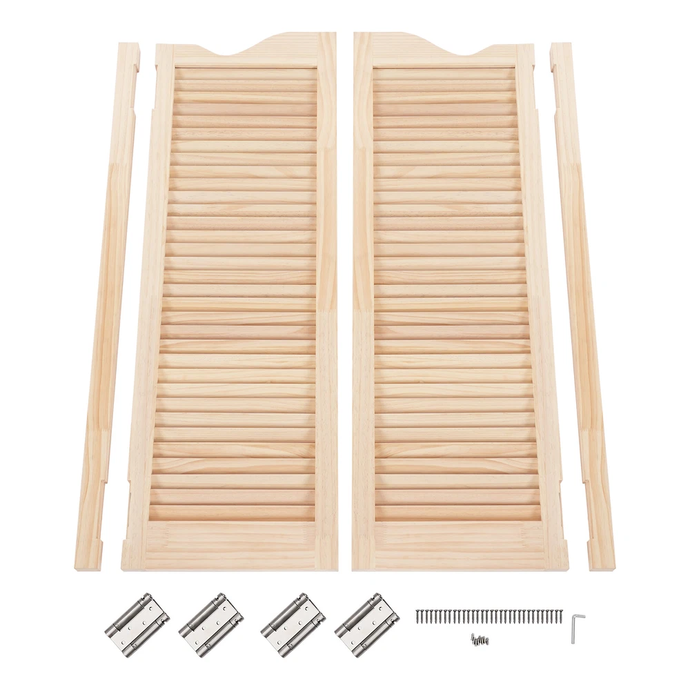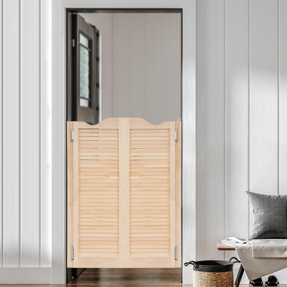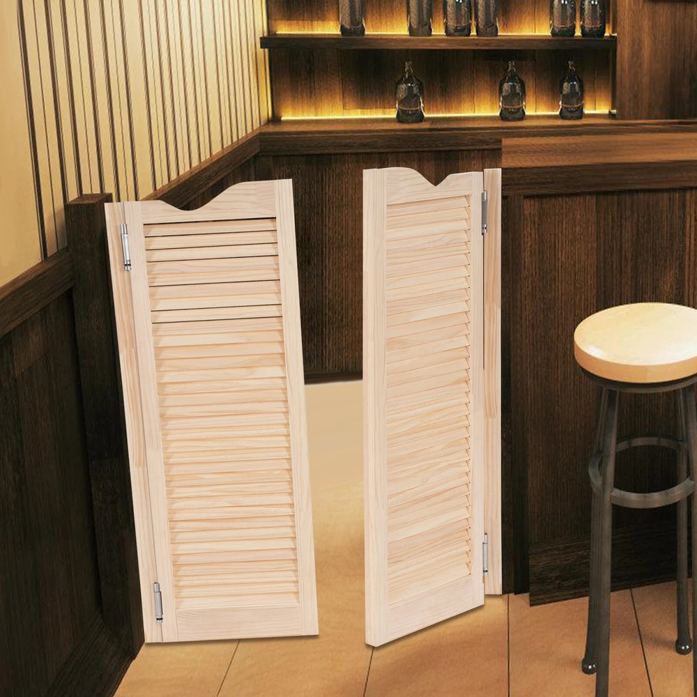 White Wood Wall-Mounted Double Half Cafe Swinging Saloon Bar Doors with Hinges