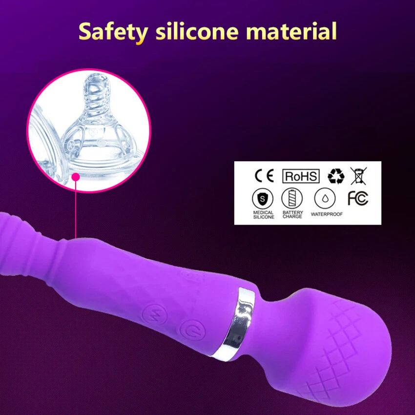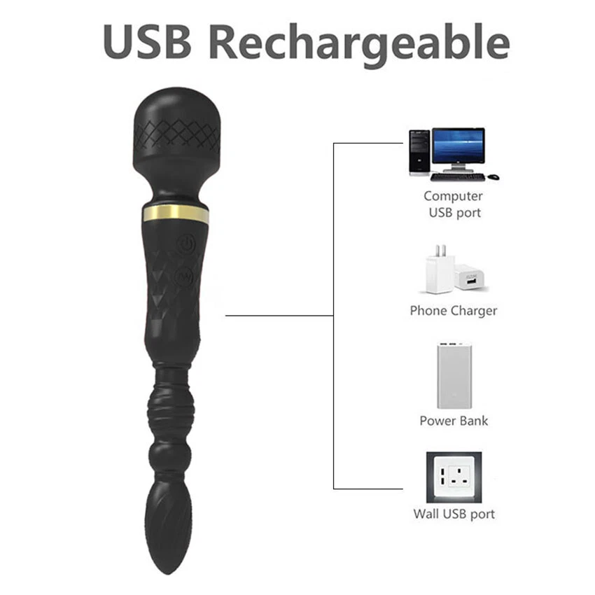 Double Head Vibrating Wand Massager with 10 Speeds USB Rechargeable Cordless Handheld Body Massager