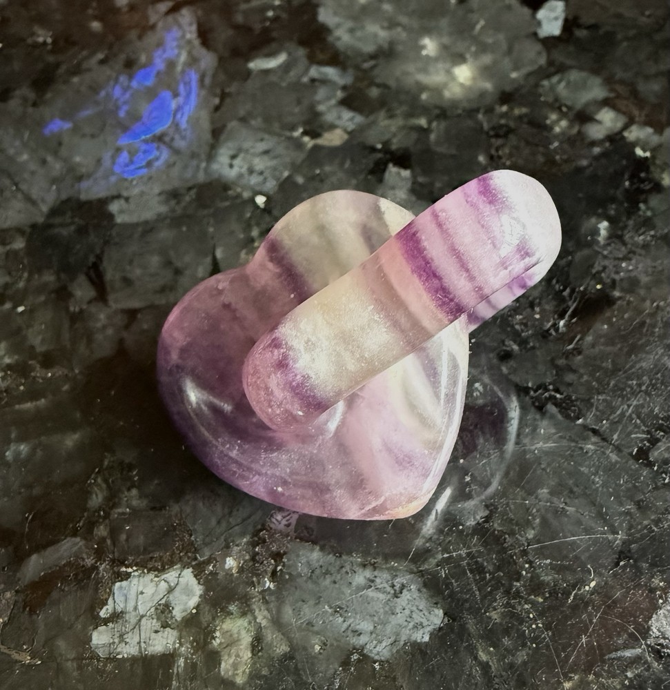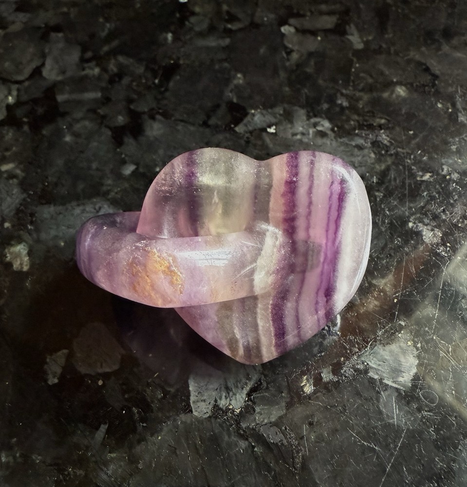 The item pictured is the exact one you will receive. Please look at pictures carefully. These are natural stones and there may be some variation in color and pattern. Some material may have imperfections like chips and scratches that occur naturally or can happen when being polished. And color may vary slightly due to the color calibration of each individual monitor. Photos were taken in the sunlight. Thanks for your understanding. Carved Double Heart Rainbow Fluorite 1.75 x 1.25. Cute addition to your collection. Comes from a smoke free home! Item ships within a day after payment is received. I will combine shipping with other items for sale. Bid on items interested and I'll send you an invoice. Thank you for looking