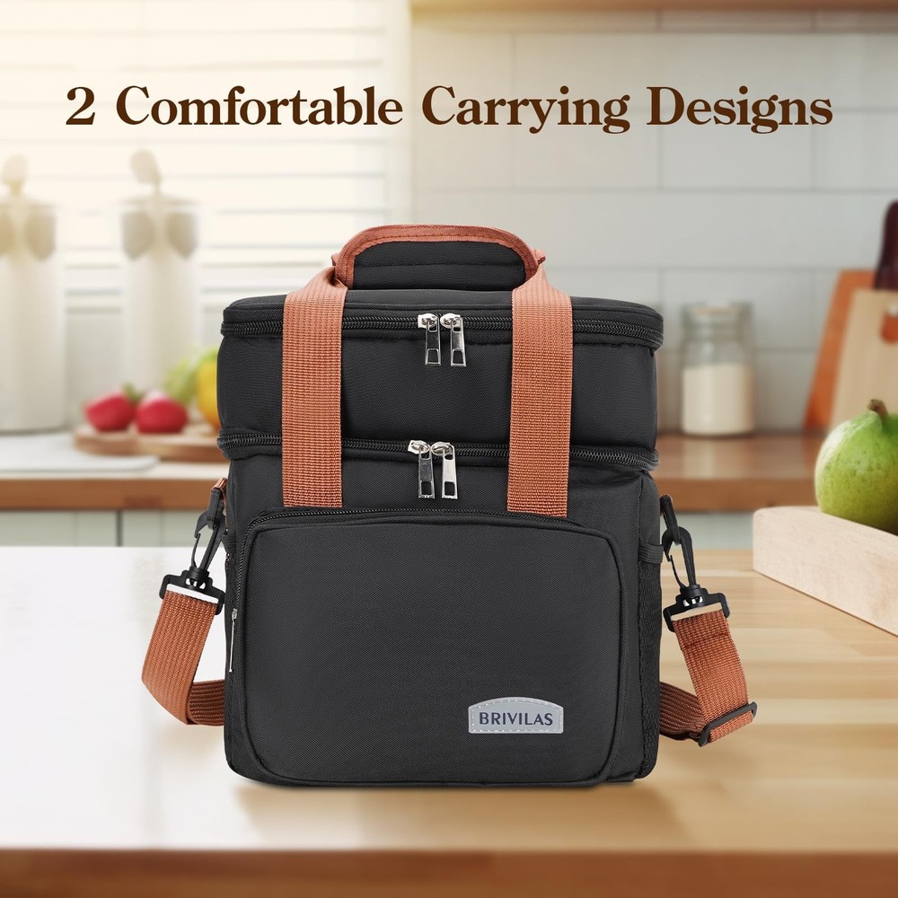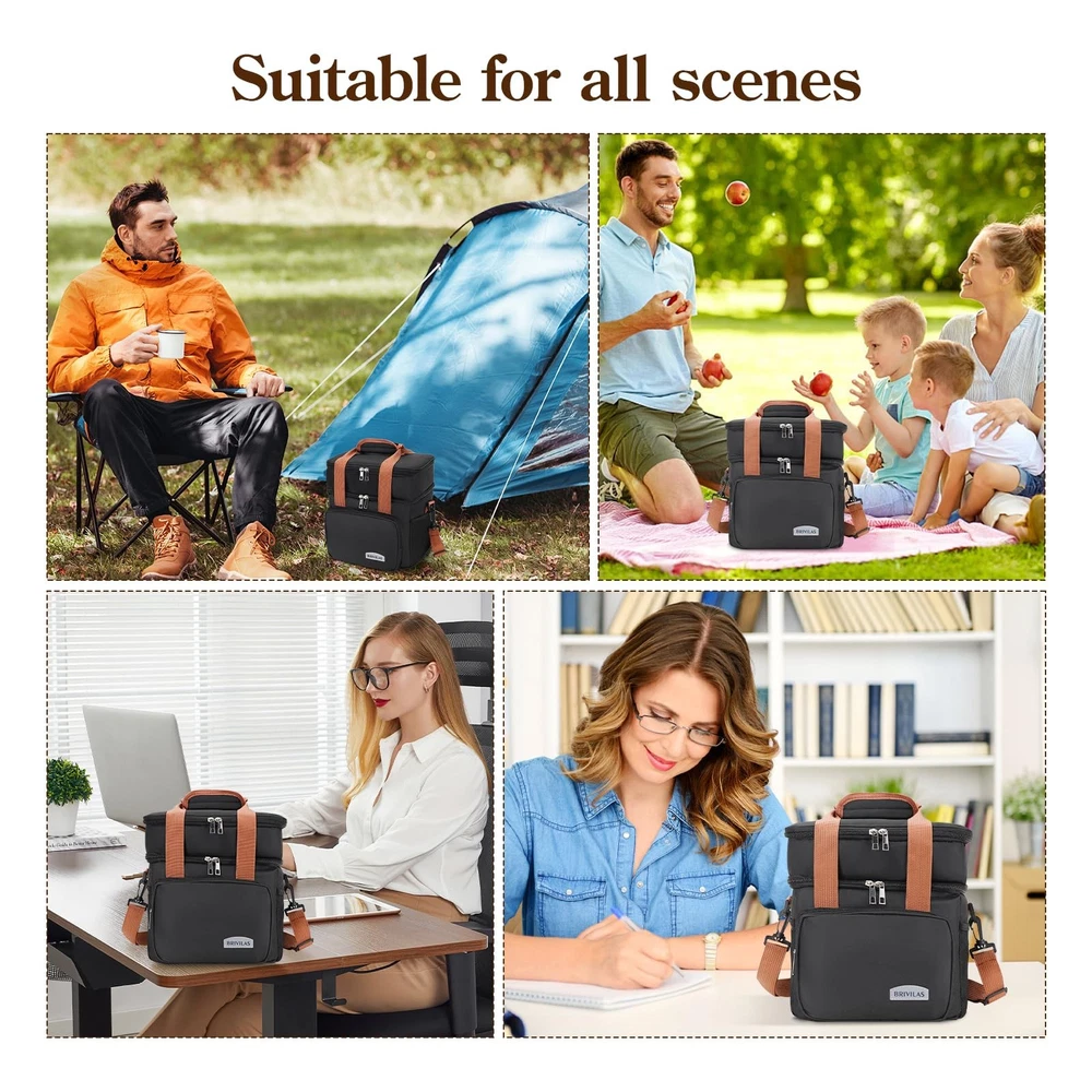 Product Name: Double Layer Heightened Crossbody Lunch Bag Product Shape With its sleek, layered cube design and smooth lines, this lunch bag blends beauty with practicality for your everyday carry needs Dimensions Measuring 25cmx 18cmx 27.5cm, this bag offers the perfect amount of space to hold your daily lunch essentials without being bulky and easy to carry around INTERIOR MATERIALS: The lining is made of high-quality snowflake-patterned aluminum foil and PEVA material. This combination not only insulates and keeps food fresh, but also ensures that your lunch tastes as good as when it was first made. Plus, it's easy to clean Exterior Fabric: The exterior is made of a stylish and durable cationic fabric mixed with a soft and comfortable non-woven fabric. The cationic fabric has excellent gloss and abrasion resistance, giving the bag a stylish appearance and durability. The non-woven fabric enhances the softness and breathability of the bag, ensuring a comfortable feel LARGE CAPACITY: The specially designed double-layer elevated structure provides amazing storage space, which can easily accommodate multi-layer bento boxes, fruits, beverages and cutlery to meet your diversified lunch combination needs Insulation: Aluminum foil and PEVA lining inside form an effective insulation layer to keep food warm and fresh for a long time even outdoors, enhancing your lunch experience STYLISH CROSSBODY DESIGN: Equipped with an adjustable shoulder strap, it supports crossbody, freeing your hands during busy commute or outdoor picnic DURABLE AND EASY TO CLEAN: The combination of cationic fabric and non-woven fabric is not only beautiful and durable, but also easy to take care of, stains can be easily wiped away, so the bag stays as good as new for a long time This double layered and heightened crossbody lunch bag is an indispensable companion in your daily life Now start enjoying the special dining pleasure ELEGANT DESIGN AND PRACTICAL: The double height crossbody lunch bag is stylishly designed and measures 9.8“ (L) x 7” (W) x 10.8” (H), which can hold your daily necessities without looking bulky. HIGH QUALITY INSULATION MATERIAL: Lined with high-quality aluminum foil and PEVA material, it is insulated to keep the food fresh and tasty, waterproof and leak-proof, easy to clean Durable and fashionable appearance: made of Oxford cloth, thickened cationic fabric is not only wrinkle-resistant, wear-resistant and washable, with good heat preservation, but also not easy to fade. SPACIOUS STORAGE SPACE: Double-layer construction provides ample storage space for multi-layer bento boxes, beverages and utensils. The insulated material keeps food warm and fresh for a long time, enhancing your lunch experience CONVENIENT SLANTED DESIGN: The lunch bag comes with an adjustable shoulder strap for easy slanting, freeing up your hands for busy commutes or outdoor picnics. This lunch bag is an indispensable companion in your daily life.