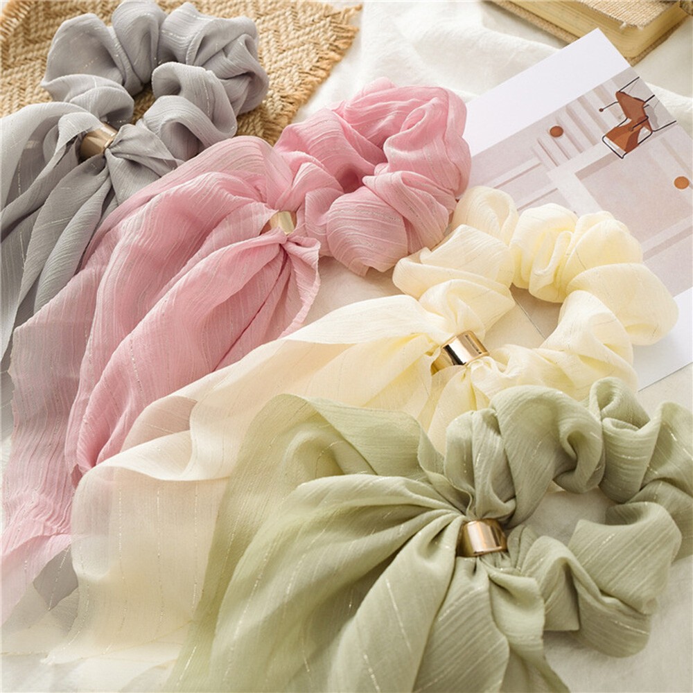 Double Layer Bow Chiffon Long Ribbon Scrunchie Hair Scarf Rubber Band Hair Tie Double Layer Bow Chiffon Long Ribbon Scrunchie Hair Scarf Rubber Band Hair Tie Feature: Fashion design,100% Brand New,high quality! Not only adults can use, girls are suitable Features: elastic, soft, skin-friendly Use For: Gifts, Party, Daily, Dance, Office, Career Size:Free Size,with elastic; One size fit most. Hair Ring diameter about 8cm, Streamer length about 21cm Material:Polyester Color: As picture shown Gift for:Girl Friend/Wife/Mom/Female/ Girls Popular tip Generally speaking, many girls and women like to buy several different colors to match various clothes. Change to use on different occasions. Please note: Please allow 1-2cm differences due to manual measurement, thanks. Due to the difference between different monitors, the picture may not reflect the actual color of the item. We guarantee the style is the same as shown in the pictures.Thank you! Package Included:1 x Hair Scrunchies