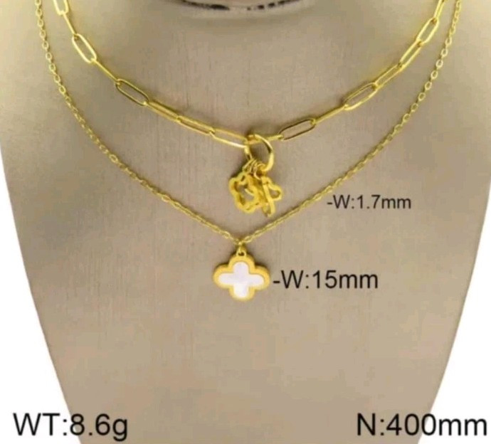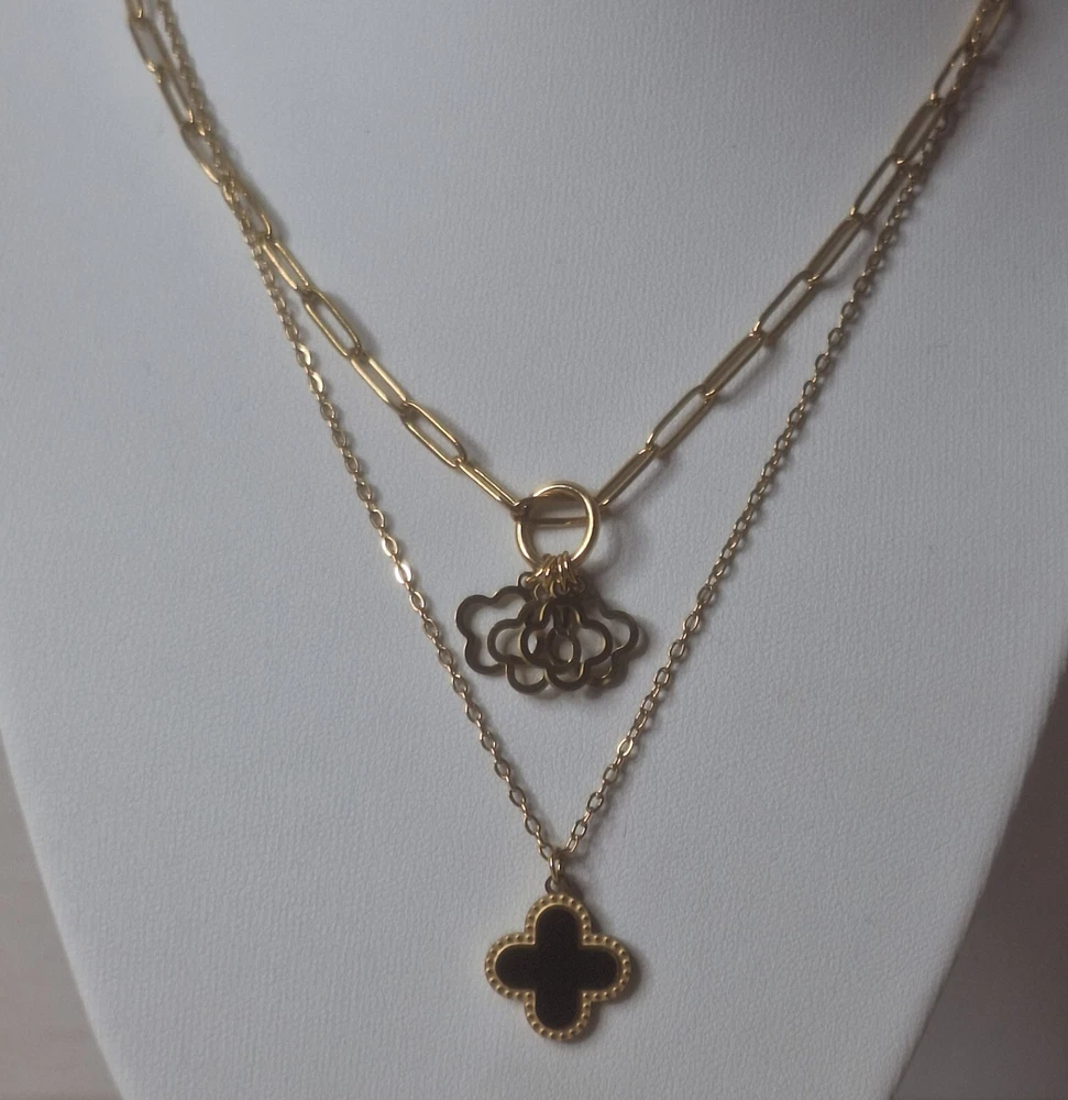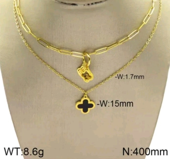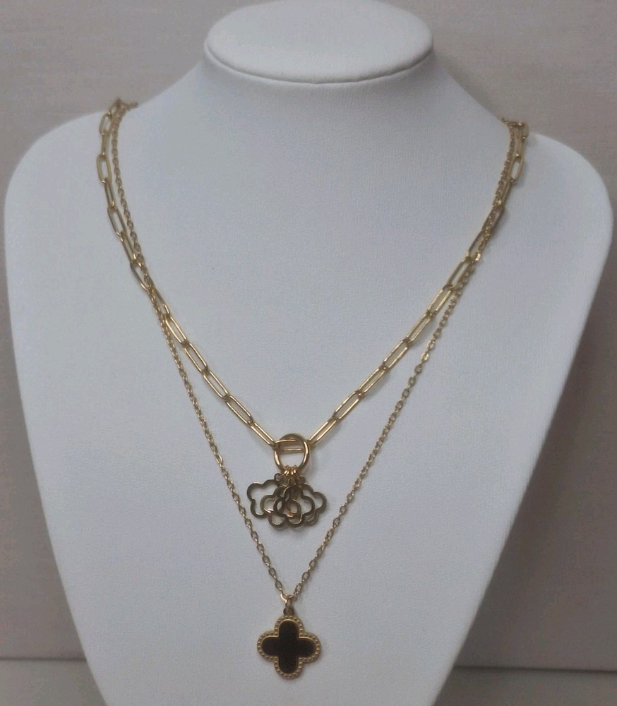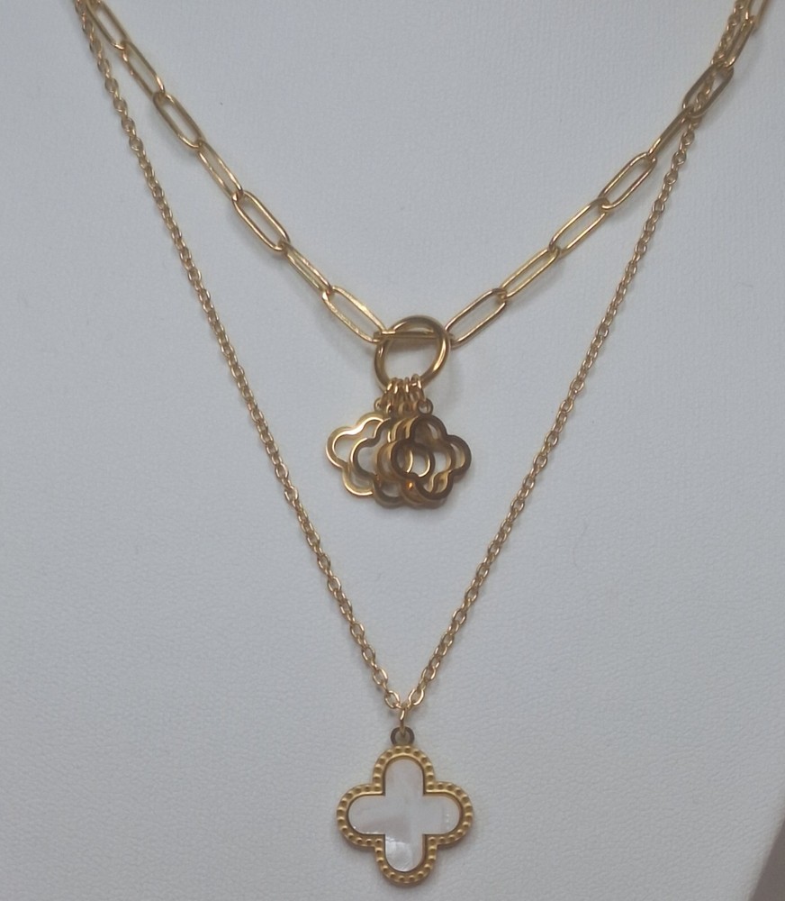 This double-layered clover necklace is made of stainless steel in a gold color. It features an adjustable lobster closure and a pendant shape of a clover. The necklace is 40 cm in length and is hallmarked, making it suitable for various occasions. It is a stylish piece with a layered design that can be worn to symbolize luck, beauty, love, or as a fashion statement. Each item comes individually packaged, bubble wrapped and sealed in a bubble wrapped envelope. All orders are dispatched the same day Monday to Saturday using Royal mail 2nd class and yodel. Estimated delivary time 2-4 working days. All orders over £20 will be tracked. Happy Shopping Thank you Opulent-Aura