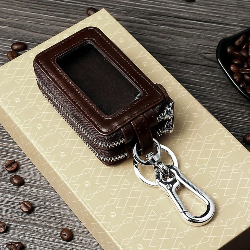 This leather key pouch is fantastic! The double-layer design keeps everything organized, and the clear window lets me unlock my car without even opening it. The genuine leather feels premium and has held up beautifully in my pocket.