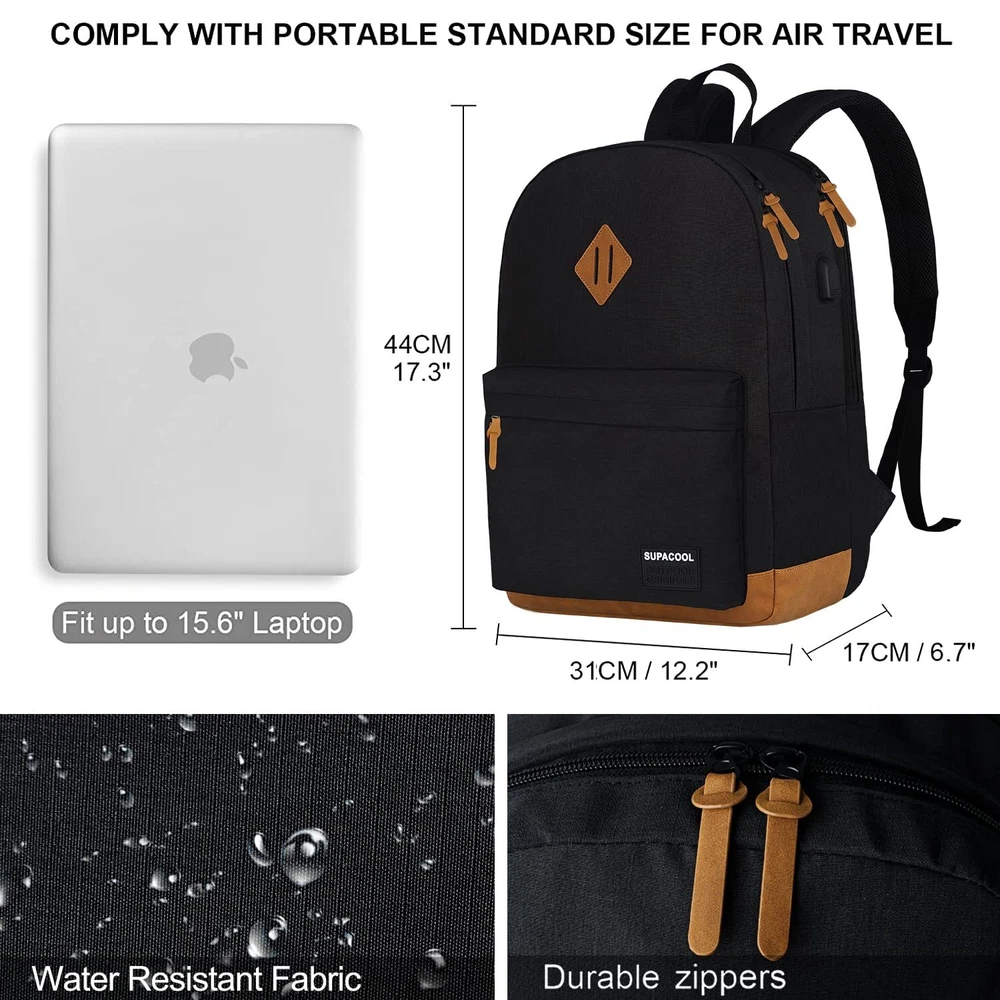 Exclusive Offers Await! Welcome to our stores! We promise you'll be satisfied. Double Layers Lightweight Fashion Casual Anti-theft Laptop Backpack with USB Charging Port For for Men and Women, Backpack for College,Work backpack travel backpack (Black and brown) Item Details Double Layers Backpack is a Multi-function Backpack suitable for School, Work, Travel, Hiking. It has a Independent Laptop Compartment can protect your laptop well. Product Features LOTS OF STORAGE SPACE & POCKETS:Two big pockets,one separate laptop compartment with thick foam can hold 15.6In Laptop,could well protect your laptop when falling down. Main pocket is spacious,you can put clothes,books,stationeries in it.Also with organizer pockets,make your small items easy to find. One anti-theft hidden pocket in the back side, keep your important items safe. MULTI-FUNCTION: This usb backpack offers you a more convenient way to charge your phone while walking. Please noted that this backpack doesn't include a powerbank, it only offers an easy access to charge.A well-knit luggage belt is quite convenient for you to fix the laptop bag on the trolley of your luggage, making your journey and travelling more convenient wherever you go. ERGONOMICS COMFORTABLE: The unisex laptop backpack has Breathable sponge mesh design of the back and straps, quite ventilation. Relieve the stress of long carry-on. Much lighter than other backpack, breathable, adjustable and wide shoulder straps added extra comfort to this College Backpack. STURDY MATERIAL&WATER RESISTANT: Made of Water Resistant and Sturdy Polyester Fabric with brown leather bottom, good quality zippers. Ensure a secure & long-lasting usage everyday & weekend.Serve you well as professional office work backpack for men and women,slim USB charging bagpack,college backpacks LAPTOP BACKPACK SIZE: 17.5x 13 x 6 Inch, can be placed under the airplane seat when traveling or on business trip. Suitable for commuting or carry-on. Good choose as a daily use backpack, business laptop backpack, work backpack, office work bag for men and women. THIS ITEM IS NOT INTENDED FOR USE BY CHILDREN 12 AND UNDER. Payment Information ⦿ All payments are handled securely through eBay. ⦿ We accept PayPal and all major credit cards. ⦿ Payment must be completed immediately after purchase. ⦿ If there are any issues with the payment, please contact our support team for assistance. Shipping Details ⦿ We only ship to the address provided at checkout. Please verify your address before completing your purchase. ⦿ Orders are processed within 1 business day (excluding weekends and holidays). ⦿ Delivery usually takes 3-5 business days. ⦿ We use trusted shipping services such as UPS, FedEx, and USPS. ⦿ Shipping is available only within the contiguous United States. We do not ship to Alaska, Hawaii, Puerto Rico, or PO Boxes. ⦿ If there are any shipping delays, please contact us for support. Return Policy ⦿ We offer a 30-day return policy for your peace of mind. ⦿ If you are not satisfied with your purchase, you can return it within 30 days for a full refund. ⦿ Please contact us to obtain the return address before sending back any items. ⦿ Returns must be in their original condition and packaging.