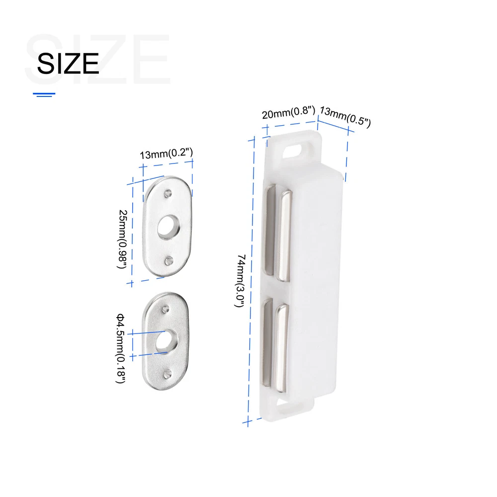 Document APPLY TO -Suitable for home furniture, glass doors, wardrobe doors, dressing tables, cupboards, wardrobes, closets, etc,Specification:Main Body: Total Size: 74mm(L)x20mm(W)x13mm(H)/3"x0.8"x0.5"Screw Mounting Size: 7mm(L)x3.5mm(W)/0.28"x0.14"Mounting Hole Middle Distance: 64.5mm/2.54". Strike Plate: Total Size: 25mm(L)x13mm(W)x2mm(T)/0.98"x0.51"x0.02"Screw Mounting Dia: 4.5mm/0.18"QUANTITY INCLUDED - 4Pcs x 3"x0.8" Cabinet Door Catch(Screws are not included)ADVANTAGE - Our magnetic door catch design is small, drawer closet magnet latch can close the door more efficiently. The magnetic force makes it difficult for your pet to open the door so that add extra safe to your home. Double Magnetic Latches Catch (3"x0.8") 4Pcs, Plastic Cabinet Magnet Latch APPLY TO -Suitable for home furniture, glass doors, wardrobe doors, dressing tables, cupboards, wardrobes, closets, etc, Specification: Main Body: Total Size: 74mm(L)x20mm(W)x13mm(H)/3"x0.8"x0.5" Screw Mounting Size: 7mm(L)x3.5mm(W)/0.28"x0.14" Mounting Hole Middle Distance: 64.5mm/2.54". Strike Plate: Total Size: 25mm(L)x13mm(W)x2mm(T)/0.98"x0.51"x0.02" Screw Mounting Dia: 4.5mm/0.18" QUANTITY INCLUDED - 4Pcs x 3"x0.8" Cabinet Door Catch(Screws are not included) ADVANTAGE - Our magnetic door catch design is small, drawer closet magnet latch can close the door more efficiently. The magnetic force makes it difficult for your pet to open the door so that add extra safe to your home. Hot Item Payment 1.We accept eBay payment . 2.Payment must be received within 7 business days of auction closing. Shipping 1.We ship to your eBay or Paypal address. Please make sure your eBay and Paypal address is correct before you pay. 2.Items will be shipped within 1-3 business day when we received payment. 3.Delivery time depends on destination and other factors. Description Policy Double Magnetic Latches Catch (3"x0.8") 4Pcs, Plastic Cabinet Magnet Latch APPLY TO -Suitable for home furniture, glass doors, wardrobe doors, dressing tables, cupboards, wardrobes, closets, etc, Specification: Main Body: Total Size: 74mm(L)x20mm(W)x13mm(H)/3"x0.8"x0.5" Screw Mounting Size: 7mm(L)x3.5mm(W)/0.28"x0.14" Mounting Hole Middle Distance: 64.5mm/2.54". Strike Plate: Total Size: 25mm(L)x13mm(W)x2mm(T)/0.98"x0.51"x0.02" Screw Mounting Dia: 4.5mm/0.18" QUANTITY INCLUDED - 4Pcs x 3"x0.8" Cabinet Door Catch(Screws are not included) ADVANTAGE - Our magnetic door catch design is small, drawer closet magnet latch can close the door more efficiently. The magnetic force makes it difficult for your pet to open the door so that add extra safe to your home. Hot Item Payment 1.We accept eBay payment . 2.Payment must be received within 7 business days of auction closing. Shipping 1.We ship to your eBay or Paypal address. Please make sure your eBay and Paypal address is correct before you pay. 2.Items will be shipped within 1-3 business day when we received payment. 3.Delivery time depends on destination and other factors.