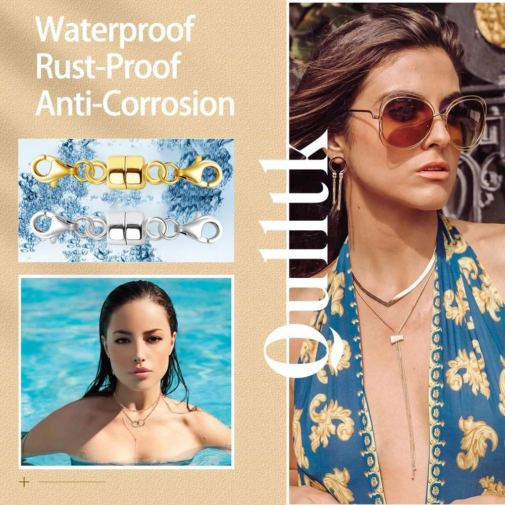 Double Lobster Clasp Magnetic Necklace Clasps and Closures 14K Gold and Silver Magnetic Jewelry Clasps Converters for Bracelet Necklaces Extender About this item Save you time: Each locking necklace clasp contains 2 pieces of magntic parts; They can easily attract together, so you don't have to button the necklace with your hand, which can save you time and energy Design: The double lobster clasps adopt a classic double headed design, which can tightly fasten both ends of the bracelets or necklaces, and they can easily add additional length to your jewelry.and you are also free to remove the lobster clasp at both ends 6PCS Magnetic Necklaces Extender Size: L 1.45”,D 0.24”. 0.06oz wight with strong magnetic.The appropriate size fits most necklaces and bracelets Perfect for people with long nails, arthritic, limited use of fingers: If you’re suffering with arthritis or have limited use of your hands,Qulltk's bracelet clasp easy to use will be a blessing to you!Start wearing your beloved jewelry pieces again Widely Used: Our necklace clasps have simple and stylish look,It's easy to wear with your necklace or as an extension to a necklace or a bracelet. suitable for making necklaces,bracelets,anklet chains or other DIY jewelry crafts