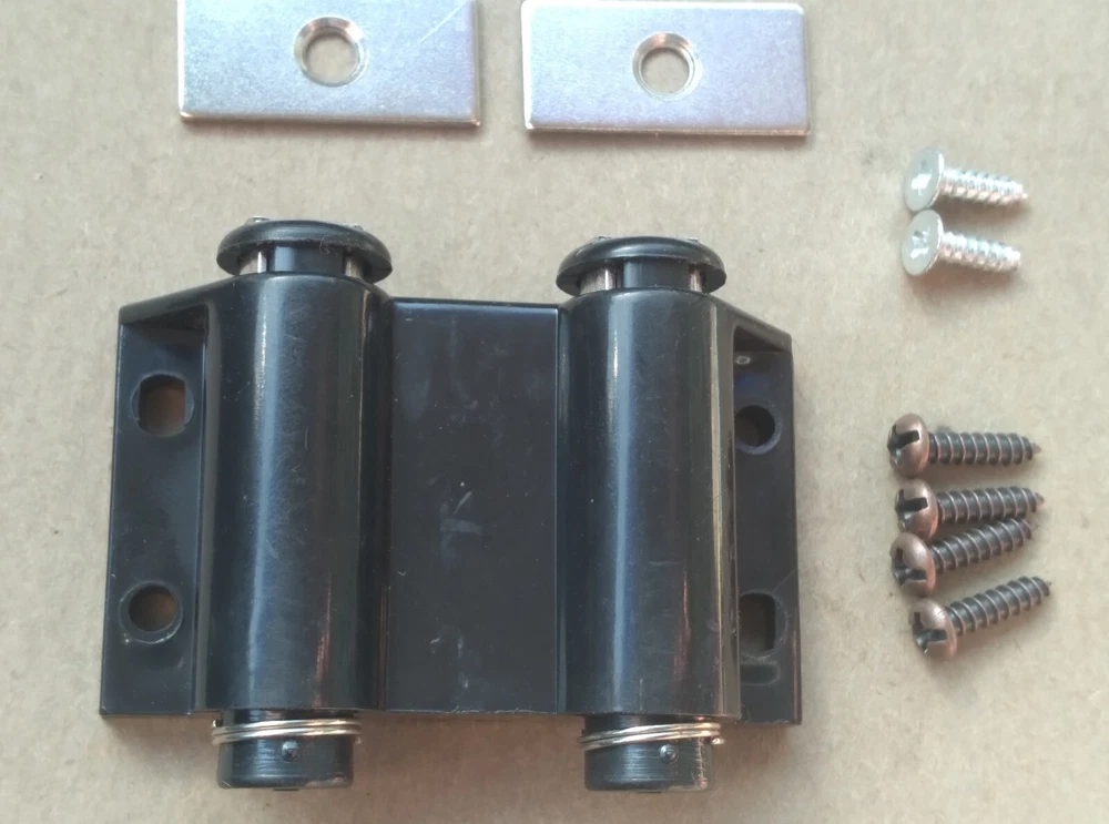 Here 49 packs of double magnetic latches, each pack comes with the main latch 6 screws and 2 latch (chrome looking) plates, NOS still in the packages. Check out pics for more information and thanku for veiwing and greatly appreciated