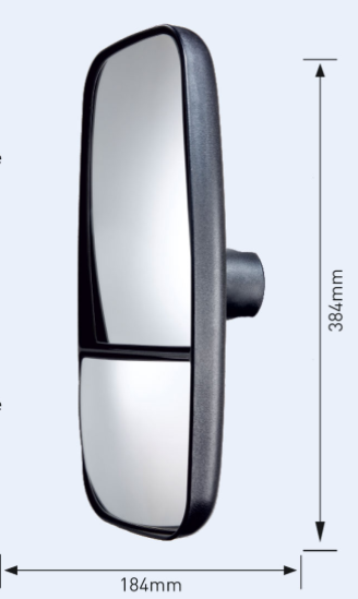 Yellow M926CE Manually adjustable Twin mirror class e11 II III &IV Ashtree Cyclesafe Mirror Main Mirror (1200 r) Wide Angle (300 r) Overall 384mm Tall x 184mm Wide Fits arms or poles 16 - 28mm Ø Post by Royal Mail/Evri/other No VAT
