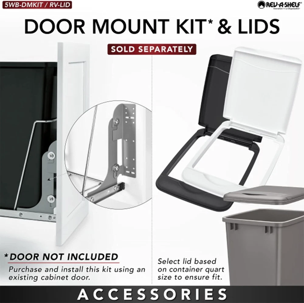 Store New Arrivals Add to Favorite View Feedback Contact Double Pullout Trash Can for Kitchen Cabinets 35 Qt Garbage Recycling Bin on Full Extension Slides, Red/Black, RV-18KD-1618C-S Description Item model number Ad-bm2-86730 Unit Count 1.0 Count Room Type Kitchen Capacity 35 Quarts Color Red & Black Material Metal Shape Rectangular Opening Mechanism Pull-Out Recommended Uses For Product Kitchen Special Feature Heavy Duty Product Dimensions 22"L x 14.21"W x 19.25"H Rev-A-Shelf Pullout Waste Container: Keep your kitchen waste and recycling container hidden but easily accessible with this double 35-quart pullout waste containers system Trash Can Specifications: Dimensions (W x D x H): 14.21"W x 22"D x 19.25"H; Designed for base cabinets with a cabinet opening width of 14.5” to 18”; MCO for face frame and frameless cabinet is 14.5"W x 22"D x 19.5"H Smooth Gliding Garbage Cans: Built with a chrome-plated heavy-gauge wire construction frame that effortlessly slides in and out on full-extension, ball-bearing, rear basket for extra storage, lids are available and sold separately Easy Install Waste Bin: Installs in just 15 minutes this pullout container comes with everything you need for installation; mounts to cabinet floor; remove handle and mount to the cabinet door with the 5WB-DMKIT (sold separately) Rev-A-Shelf Difference: A global family-owned company offering holistic, convenient, stylish, and smart organization and storage solutions for kitchens, baths, closets, and whole homes since 1984 Product Description Rev-A-Shelf RV Waste Container Series Size Comparison Add to Cart Add to Cart Add to Cart Customer Reviews 4.8 out of 5 stars 7,663 4.5 out of 5 stars 119 4.8 out of 5 stars 7,663 4.8 out of 5 stars 5,508 Price $97.99 $ 97 . 99 $95.78 $ 95 . 78 $94.99 $ 94 . 99 — Part Number RV-18KD-11RC-S RV-15KD-2218C-S RV-18KD-2218C-S RV-12KD-22C-S Width (Inches) 14.21 11.5 14.21 10.46 Depth (Inches) 22 22 22 22 Height (Inches) 19.25 18.84 19.25 19.25 Quart Size 35 27 35 35 Number of Bins 2 2 2 1 Minimum Cabinet Opening 14.5 11 14.5 11.50 Lids Included ✔ ✘ ✘ ✘ 1 How to Install 2 Tools Needed 3 Step 1 4 Step 2 5 Step 3 The video showcases the product in use. The video guides you through product setup. The video compares multiple products. The video shows the product being unpacked. Does the storage basket need to be attached to operate? No, the basket is included and is also optional. Is the door mount kit included ? The door mount kit is not included and sold separately (5WB-DMKIT) Are lids available? Lids are available in various colors for 35 Qt bins. Are the bins removeable? Yes, each bin is removable for easy cleaning. What size trash bags will this need? All RV trash cans use standard 12 gallon trash bags. ABOUT US We offer the best prices around on high quality products. Our E-store includes media such as books, movies, music and games while offering electronics, toys, sporting apparel, clothing, tools, general home, garden items and more. SHIPPING We are always working hard to ensure your package arrives as soon as possible. Please understand that some factors like weather, high postal traffic, and the performance of shipping companies are outside of our control. We offer free shipping to the lower 48 states and ship within 2 business days of payment, usually sooner. We do not accept P.O. Boxes. Please provide a physical address. For shipping outside of the continental USA, we only use eBay's Global Shipping Program.The item is shipped to KY and then sent to the rest of the world. International customers are responsible for all duties and taxes. Continue to check out in order to calculate costs for shipping the item to your country. Messages regarding eBay's Global Shipping Program MUST be directed at eBay EXCLUSIVELY. RETURNS We offer a 30-Day Return Policy on items which you are not completely satisfied with. You have the option for a full-refund or an exchange of the item. No returns are available on items shipped outside of the USA. PAYMENT We accept PayPal. CONTACT US This page content is yet to come Please ad us to your favorite seller and visit again later Thank You CUSTOMER SATISFACTION We try our very best to make sure every customer is completely satisfied. If there's a problem, message us! We're happy to help. WE ACCEPT Copyright © 2021 AutoDS. | All Rights Reserved