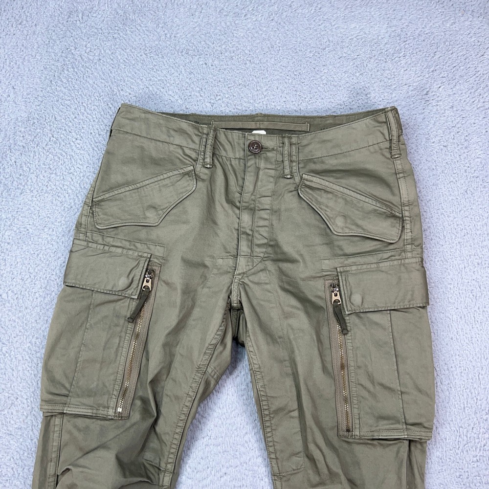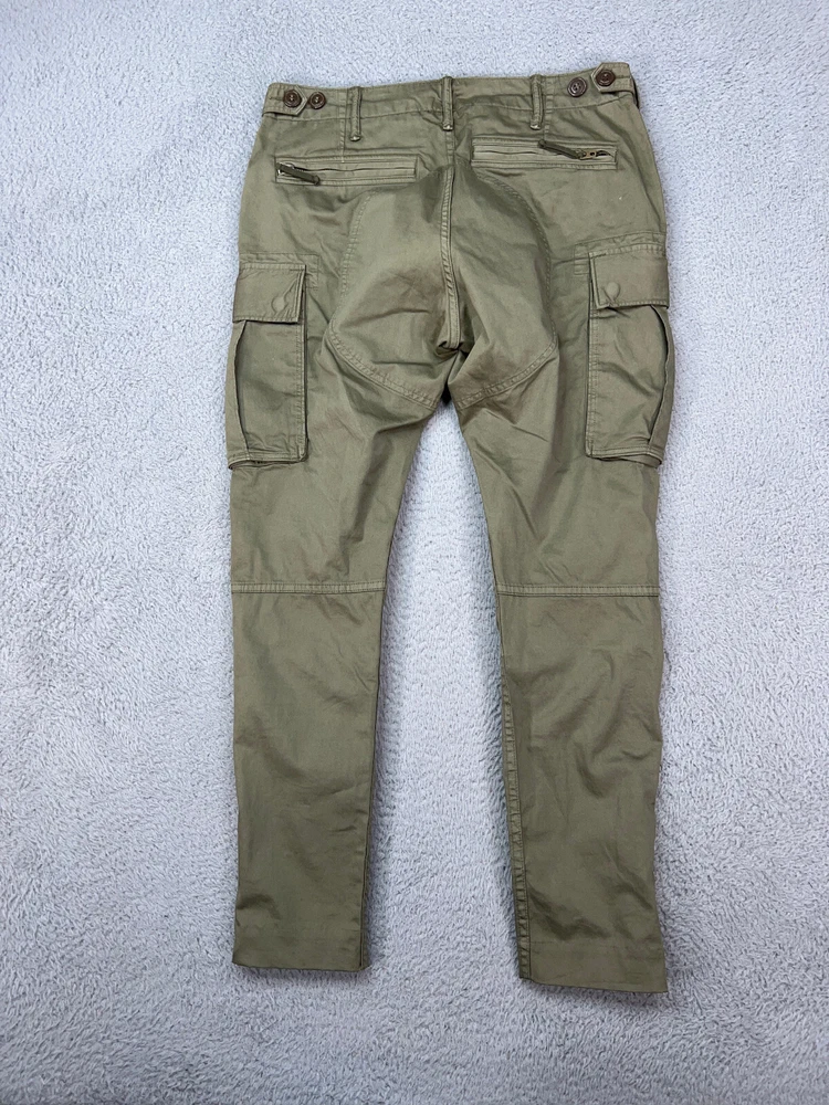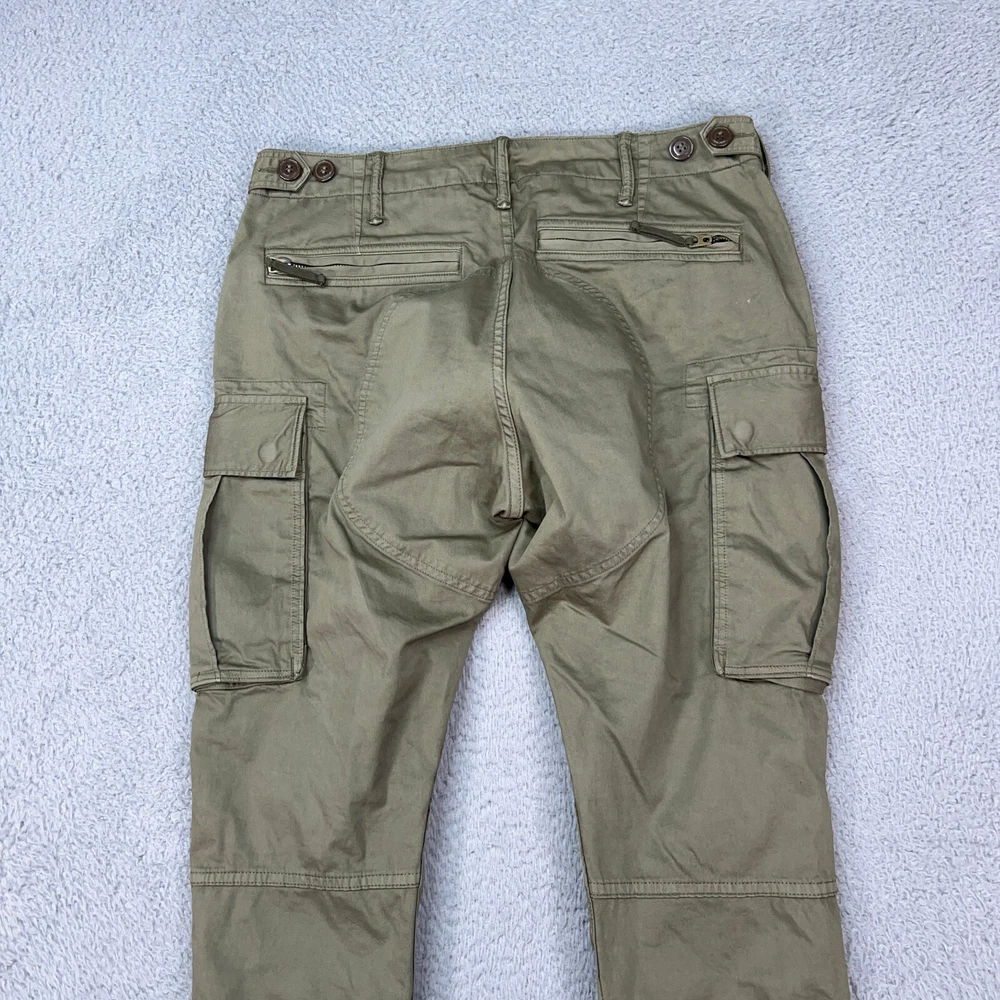 Double RL Ralph Lauren Pants Mens 29x28 RRL Cargo Military Parachute Zipper. Signs of wear, major scuff spot on back top, light scuff on back, good condition. Please refer to pictures for condition and sizing measurements. Item will be shipped the next business day and will arrive in 5-7 days. Feel free to message me if you have any questions. I offer a shipping discount on multiple items purchased.