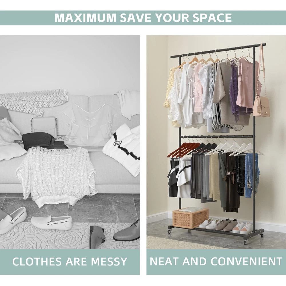 $ 27.98Heavy Duty Clothing Garment Rack Rolling Clothes Organizer Double Rails Hanging