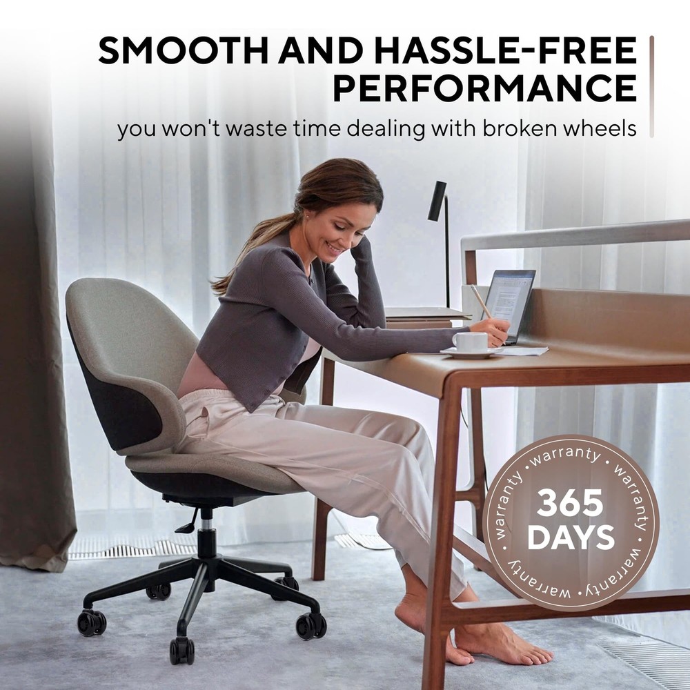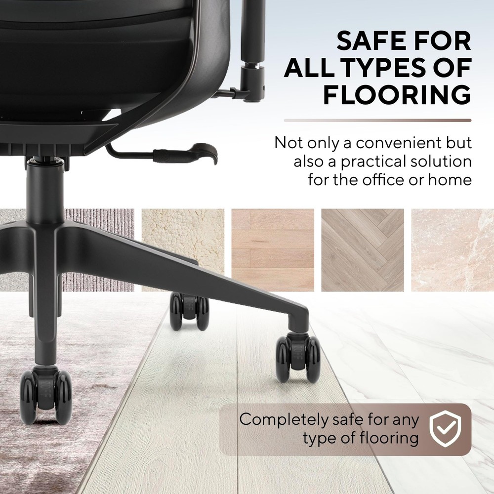 Looking for unmatched quality and performance in office chair wheels? The Double Rollerblade Casters set a new standard, being the only wheels certified by SGS for exceptional durability. Supporting up to 480 pounds across 5 wheels, these innovative casters feature a unique double roller design with both vertical and horizontal bearings for incredibly smooth movement. The advanced noise dampening system includes specialized stabilizer rings and a top damper, ensuring whisper-quiet operation. Safe for all flooring types from delicate hardwood to plush carpet, these casters won't mark or damage your surfaces. Backed by rigorous U.S. engineering and a 365-day warranty, they're built to eliminate the frustration of frequent replacements. Experience the perfect blend of durability, protection, and effortless mobility with casters - the professional choice for reliable office mobility. SGS Certified Performance - These casters are the only wheels to pass rigorous SGS durability testing, supporting up to 480 lbs across 5 wheels. Each caster features a dual roller design with vertical and horizontal bearings for superior stability and smooth movement Advanced Noise Reduction System - Engineered with a specialized noise damper and dual stabilizer rings optimized for aluminum base legs. The innovative DUO rings on the stem reduce vibration and base cavity wear, ensuring whisper-quiet operation during daily use. Multi-Surface Protection - Thoroughly tested for safety on all flooring types including carpet, wood, vinyl, laminate, tile, marble, and concrete. The specialized wheel design prevents scratching and marking while maintaining excellent mobility across any surface. Professional Engineering - Crafted with U.S. engineering expertise and rigorous testing standards. The 3-inch wheels feature a 7/16" stem diameter and 7/8" stem height for perfect fit and stability. Patent-pending design demonstrates our commitment to innovation. Hassle-Free Reliability - Backed by a comprehensive 365-day warranty against manufacturing defects. The durable construction eliminates the frustration of frequent replacements, allowing you to focus on your work without interruption. Not Compatible with IKEA chairs