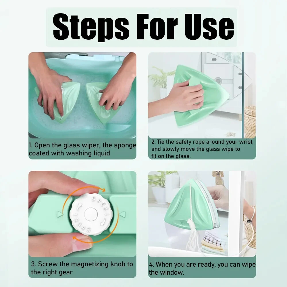 • Double-sided design for efficient cleaning : The double-sided design of this magnetic window cleaner ensures that you can clean your windows from both sides at once, saving time and effort. • Adjustable magnet for hard-to-reach areas : The adjustable magnet on this window cleaner allows you to easily clean those hard-to-reach areas that are difficult to access with traditional cleaning tools. • Magnetic glass cleaning wiper : This magnetic glass cleaning wiper is perfect for cleaning windows, doors, and other glass surfaces without leaving any streaks or smudges. • High-rise double glazing cleaning tool : With its high-rise design, this double glazing cleaning tool can easily reach tall windows and other hard-to-reach areas, making it a must-have for anyone who owns tall buildings or homes. Features: 1. Adjustable Magnetic Glider: With 5-files adjustable magnetic glider, this window cleaner ensures easy and safe cleaning without the need for a ladder or additional tools. 2. Efficient Cleaning: The double-sided window cleaner is designed to provide efficient cleaning for high-rise double glazed windows with a thickness of 0.2"-1.18". 3. Durable and Long-Lasting: Made of high-quality materials, this glass wiper is durable and long-lasting, ensuring that you get the best value for your money. 4. Time-Saving: The double-sided design of this window cleaner allows you to clean both sides of the window at the same time, saving you time and effort. 5. Easy to Use: The cleaning brush tool is easy to use and can be operated by anyone, making it a perfect addition to your cleaning supplies. Specification: Type: Double Faced Cleaner Color: Green Material: ABS Plastic Type of Magnet: Strong Neodymium Magnet Glass Thickness: Suitable for 5-25mm, Suitable for 5-30mm (option) Suitable: Hollow Glass, Glass Partition, Bathroom Glass Package Include: 1* Magnetic Window Cleaner Noted: 1. Do not use the product on cracked glass.Eliminate the solid material like cementbefore use. 2. Please check the safety thread is grip tighton the product before put it on the wrist. 3. While use eliminate impurity adsorbed atthe surface of the cleaner, or it scratchglass 4. Spray water on glass surface before start.it is easy help for cleaning It has strong magnet, improper use causedanger read the manual first. For it contains magnet, stay away fromwalch, televsion and so on. Stay awayfrom children.