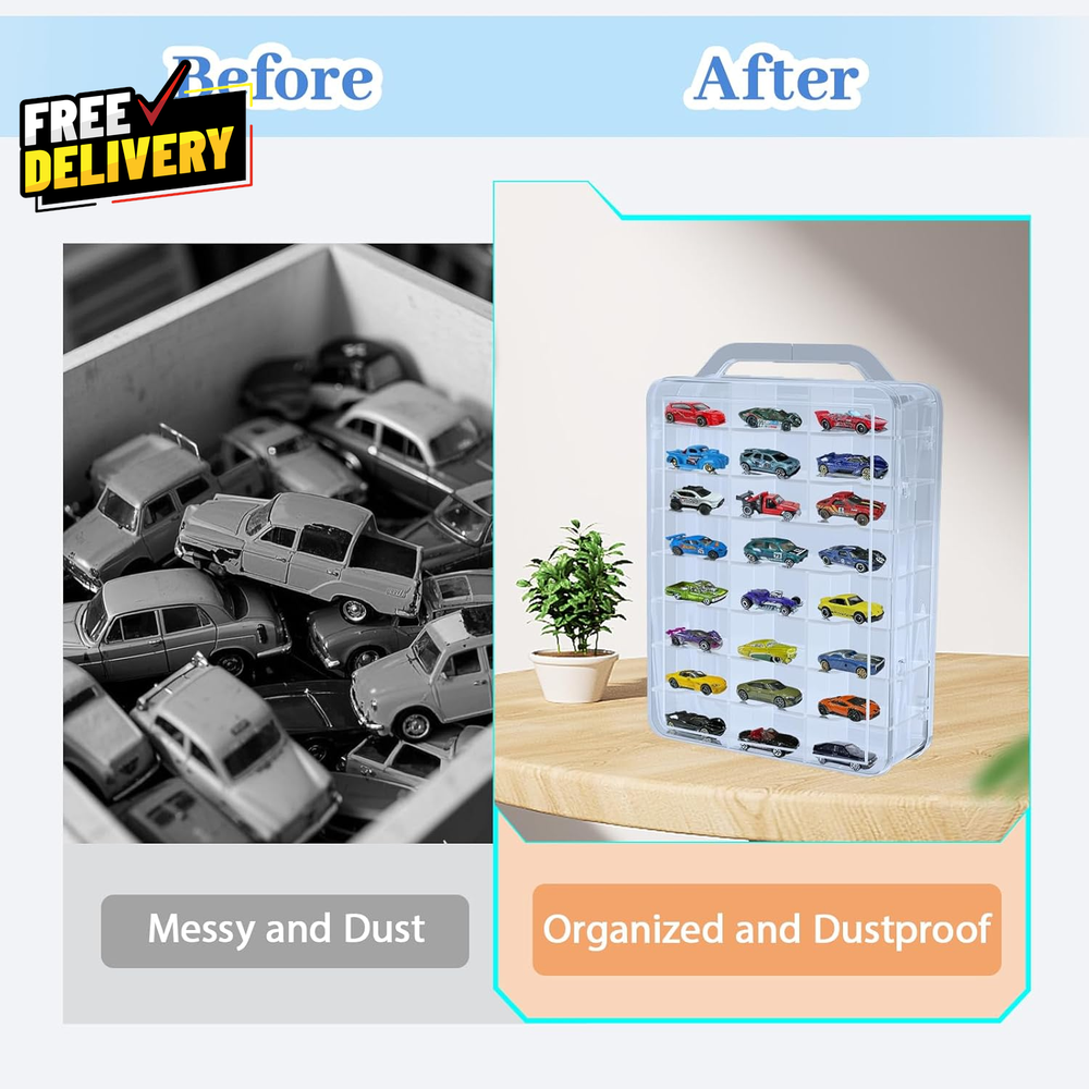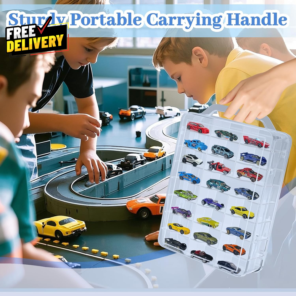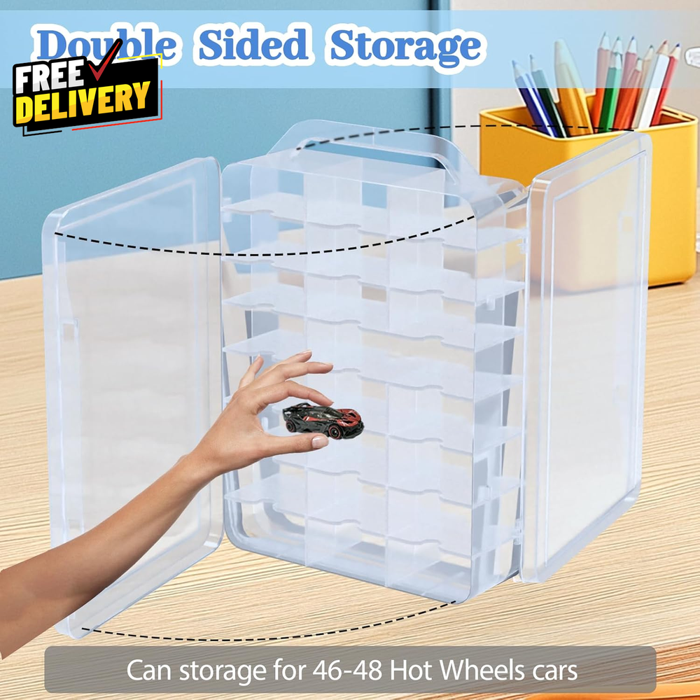 Double Sided Hot Wheels Car Storage Case with Handle for Easy Transport