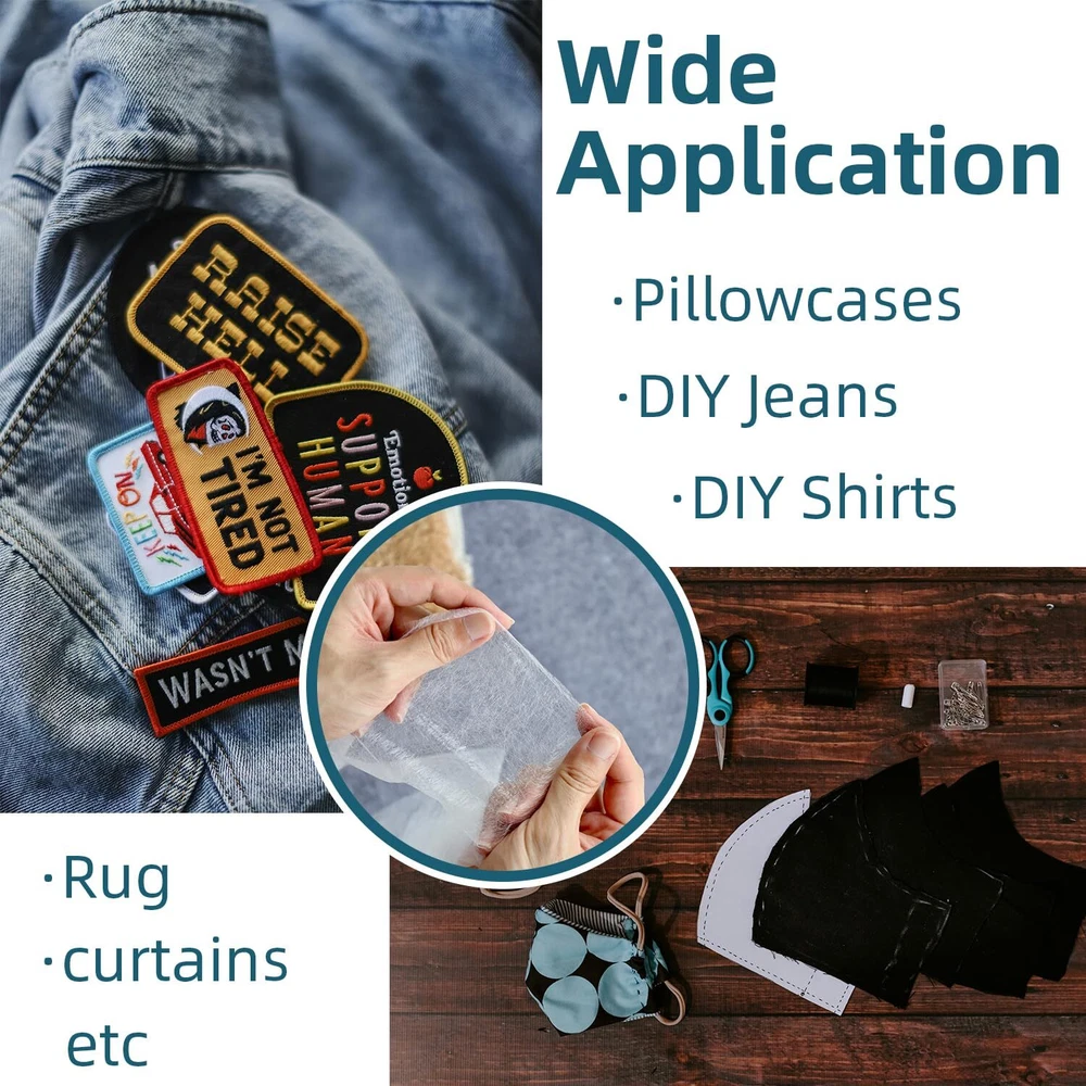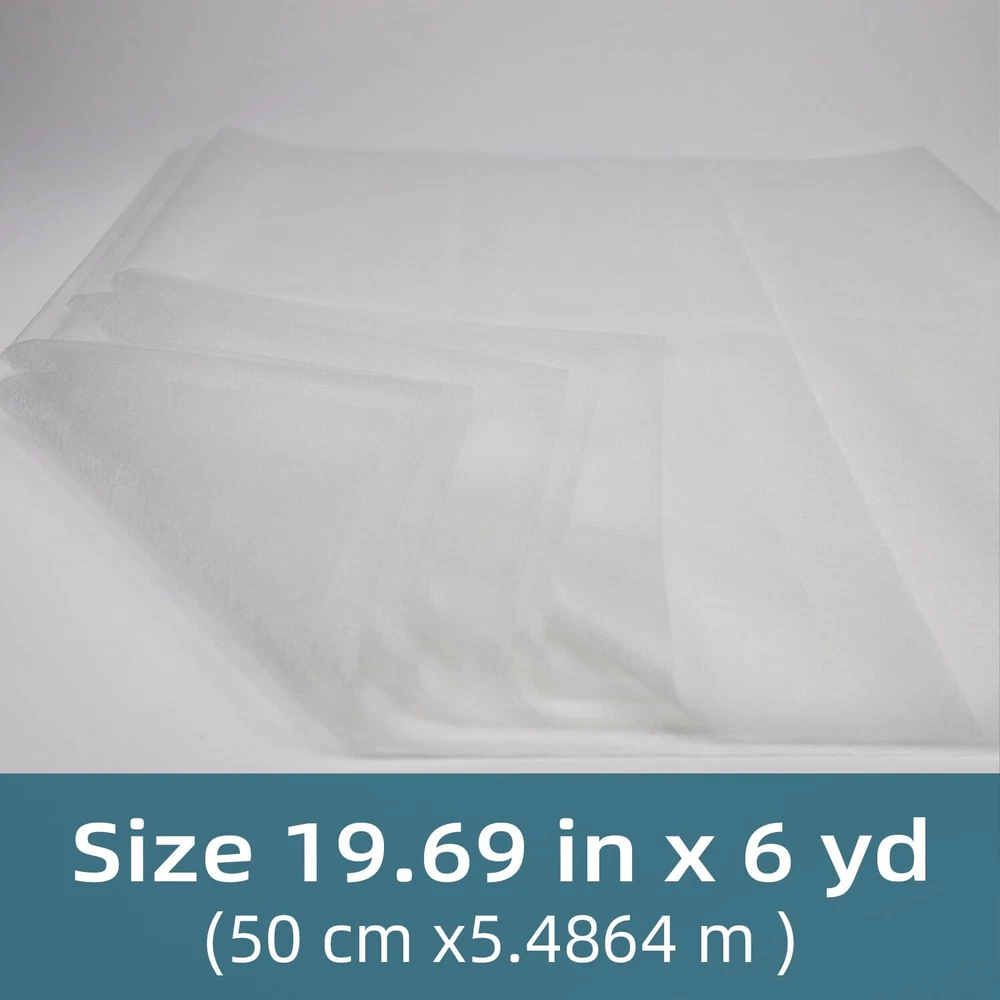 Double Sided Light Weight Non-Woven Fusible Bonding Web, White Product Details Package Dimensions : 11.42 x 7.68 x 0.39 inches; 2.4 ounces Item model number : FBW19696 Manufacturer : Transparia Country of Origin : China Brand: Transparia Color: White Material: Nylon Number of Items: 1 Recommended Uses For Product: Sewing PACKAGE INCLUDE: One piece light weight fusible bonding web, which size is 19.69inch x 6yard, designed and optimized for applique. Double sided fusible interfacing designed for gluing two items together. NO SEWING: This double sided fusible bonding web will turn any fabric into a fusible fabric. Fuse fabric to fabric. Our fusible bonded web creates a strong bond while retaining the original softness and natural hand of your fabric. And leaves no trace, replacing stitches in most crafts and repairs for a sturdy, reliable job. HIGH-QUALITY MATERIAL: Our fusible bonding web is made from 100% polyamide. It is a white mesh that is not sticky to the touch at room temperature, but melts and becomes sticky at high temperatures (275-320F).It handles well, is sheer and doesn't add bulk to your fused piece and bonds firmly once cooled. USE METHOD:First cut the desired size and place it between 2 pieces of fabric that need to be bonded together, then use an iron to heat and iron the fabric. WIDE APPLICATION: Fusible bonding web tape allows for a wider range of materials that can be bonded and can be applied for hemming broken of cloths, fabric arts and craft. For example pillowcases, double backing ribbons, curtains, repairing broken jeans, trousers, dresses, pants, shirts, and more.
