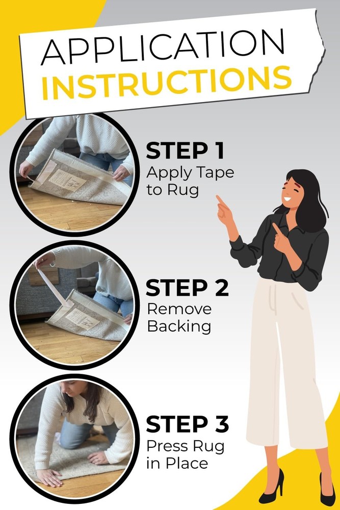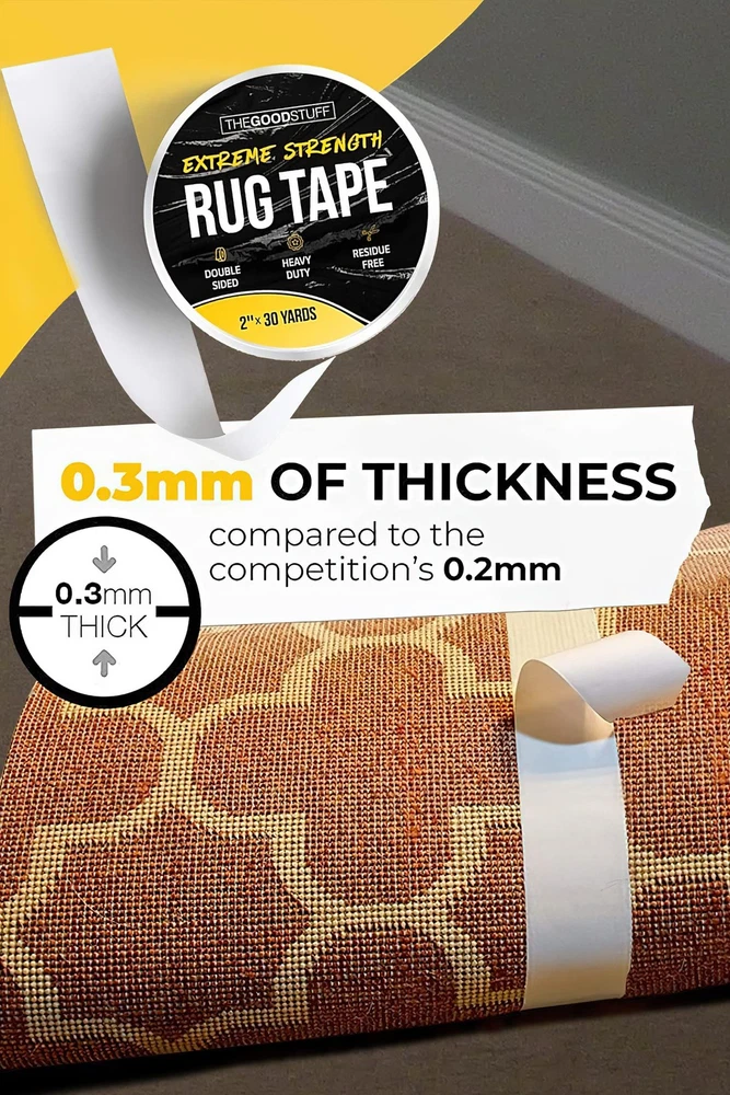 Keep your family safe from tripping hazards with the strongest carpet and rug tape on the market. With 50% thicker tape than the competitors, Essentials rug tape for hardwood floors, is durable but comes off without residue or harming your delicate surfaces. Whether you use it indoors or outdoors, on hardwood floors or concrete, stick it and know it’s not going to budge. Our unique blend of adhesives are even safe for finishes like leather and marble. Removal is safe and easy, too. Peel the rug tape gripper for hardwood floors tape off by hand with zero residue or damage. And carpet tape is so durable, you can reattach it multiple times after cleaning or rearranging. Use double-sided carpet tape with mats, rugs, carpets or even to splice together multiple carpets. Or choose it as a no-residue, easy-to-remove alternative to duct tape for minor repairs, hanging art, protecting furniture from pets, or arranging curtains and other decorative fabrics. Essentials Double Sided Carpet Tape is the ultimate tape for all of your taping needs. Surface Compatibility: Concrete Wood Leather Tile Marble Vinyl Various other indoor and out door surfaces Forget rug pad sticky stickers, this anti slip carpet gripper for area rugs keeps you safe from slips. The perfect rug holder for carpets, rugs and runners. Use this tape instead of carpet stickers for area rugs, command rug strips, rug tack down, and rug carpet anchor for a stay put rug that stays in place. Unlike, rug corners no curl for carpet, this tape keeps all your edges in place. Not just, slip resistant rugs, but no slip at all. An area rug holder and rug stoppers for hardwood floor cut to length altenative, for all size rugs. Add this carpet gripper for area rugs to your basket now, because it'll protect your home! Ultra-Strong Grip for Maximum Safety – Say goodbye to slipping rugs! Our heavy-duty double-sided carpet tape keeps area rugs, runners, and mats firmly in place. No more curling edges or dangerous tripping hazards. Residue-Free & Safe for All Floors – Designed for easy removal, this rug tape won't leave sticky messes or damage your hardwood, tile, or laminate surfaces. Perfect for long-term or temporary use. Reusable & Easy to Apply – Tear with ease! Our peel-and-stick design makes application a breeze, and you can reposition as needed without losing grip. Works on Any Surface – Whether it’s wood, laminate, tile, or carpet, our multipurpose rug tape provides secure hold without damaging your floors. Ideal for homes, offices, RVs, and commercial spaces. Trusted by Thousands of Happy Customers – Rated highly by thousands of reviewers on Amazon! Experience the #1 choice for secure rugs today.